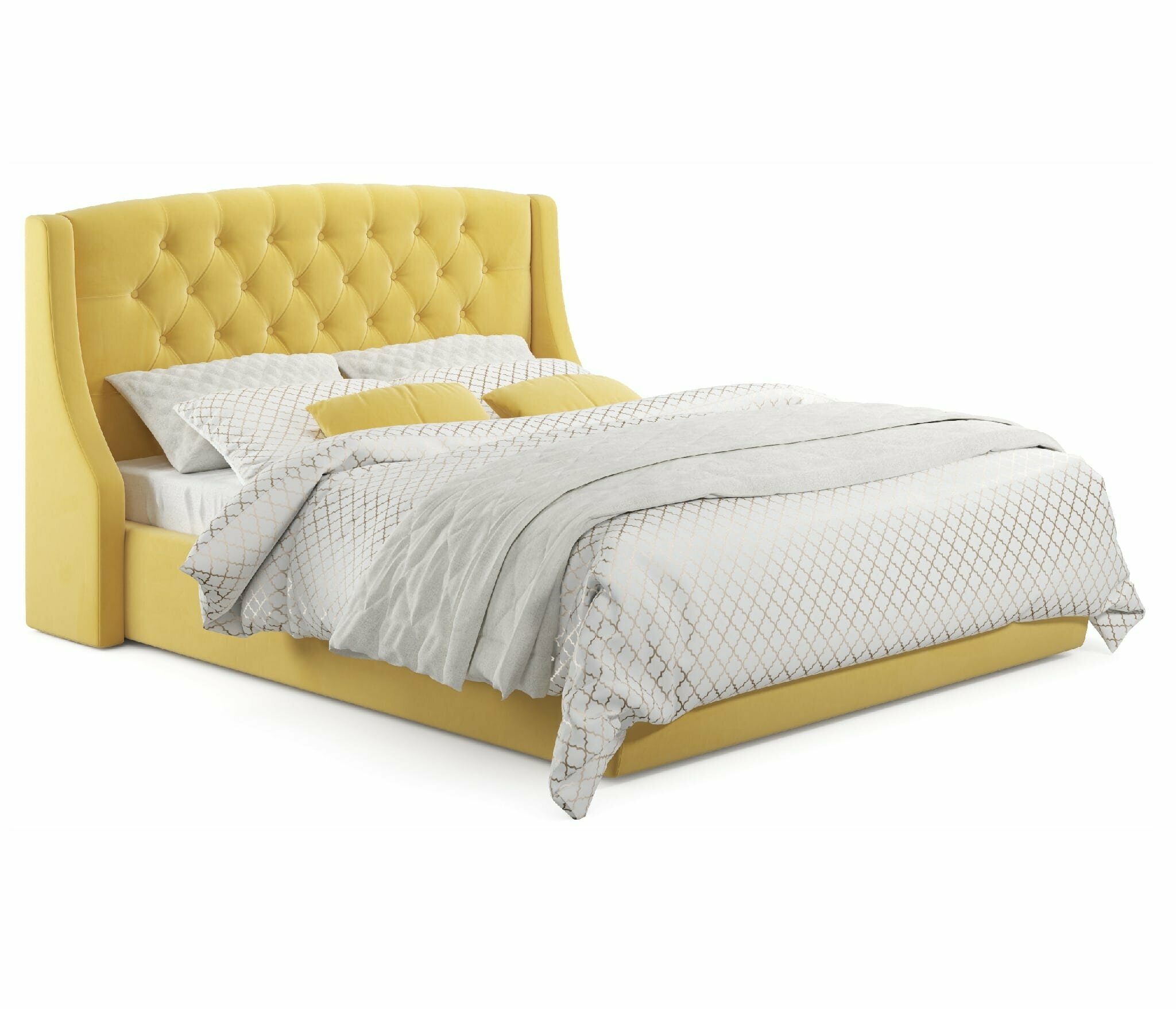 10 цен на Двуспальная кровать Stefani 1600 желтая Zeppelin с ортопедическим основанием, 160х200, мягкая из велюра, ламели