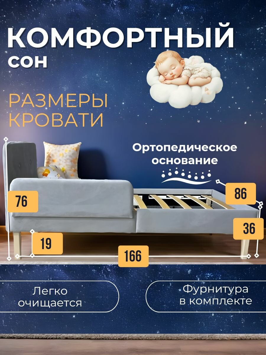 Кровать детская "SOFT" односпальная 160*80 с бортиком серая информация: