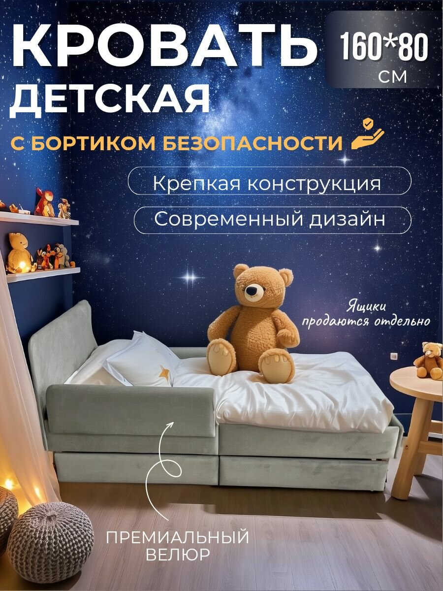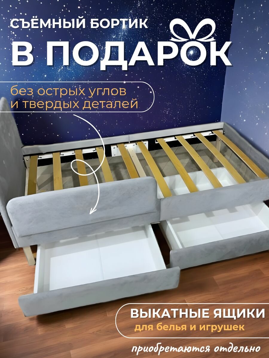 10 цен на Кровать детская "SOFT" односпальная 160*80 с бортиком серая