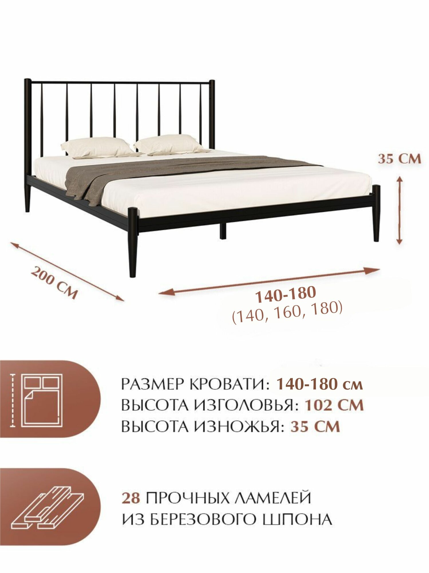 Отзывы на Двуспальная кровать бриз, металлическая, железная, кованая, черная, 140х200 см