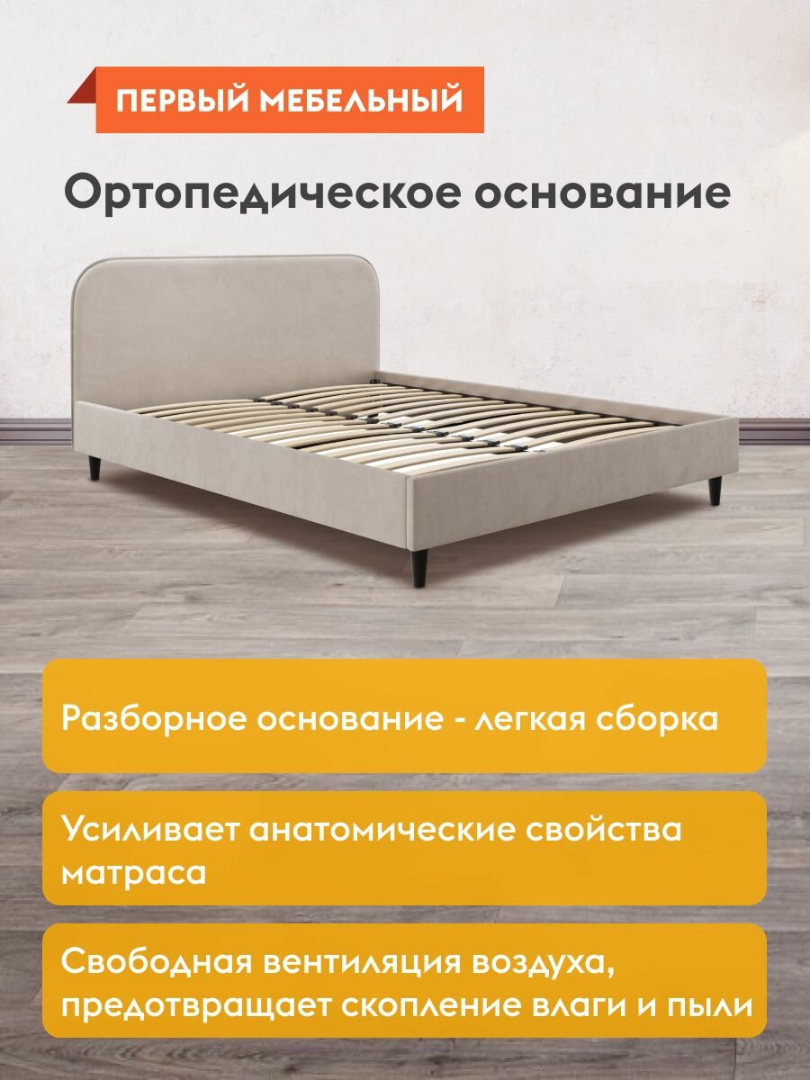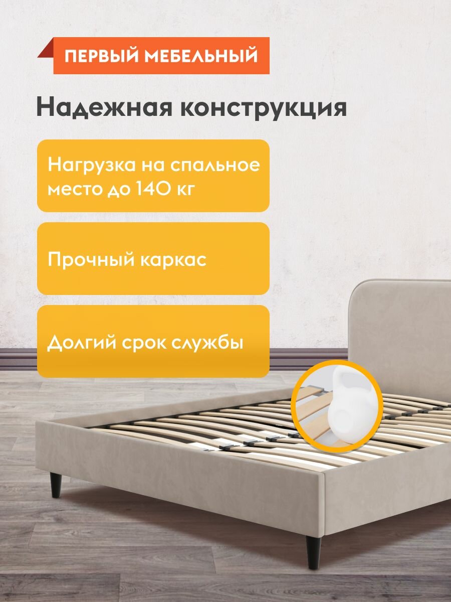 10 цен на Кровать двуспальная Эни 160х200 см, деревянная, с анатомическим основанием, Кремовый, велюр