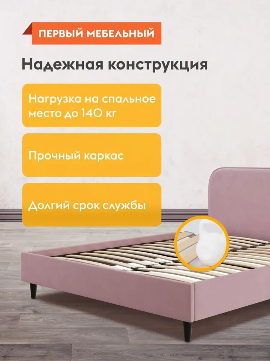 Односпальная кровать Эни 120х200 см, деревянная, с анатомическим основанием, Пудровый, велюр информация: