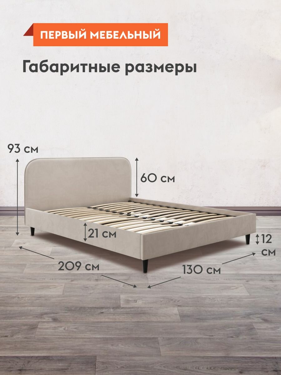 Односпальная кровать Эни 120х200 см, деревянная, с анатомическим основанием, Кремовый, велюр информация: