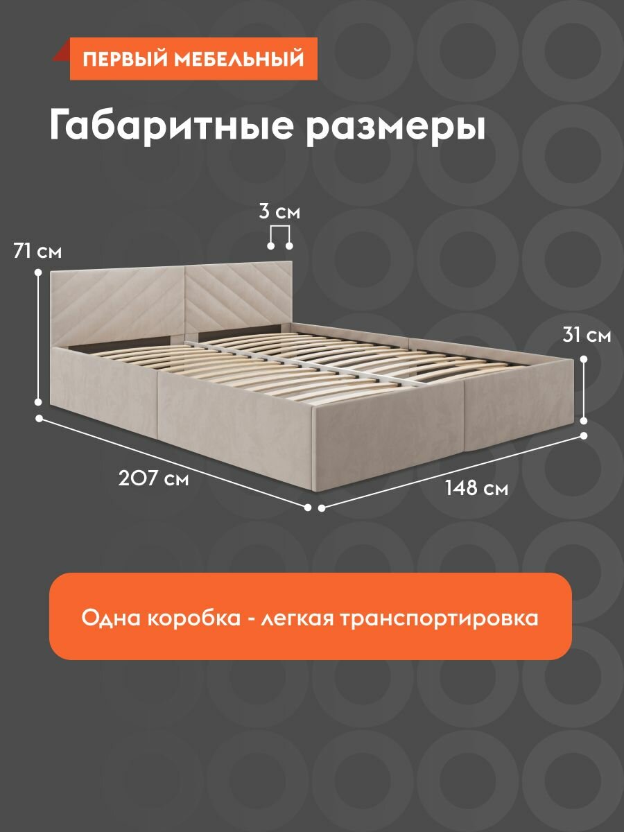 Отзывы на Кровать двуспальная Джос 140х200 см, деревянная, с анатомическим основанием, с мягким изголовьем, Кремовый, велюр