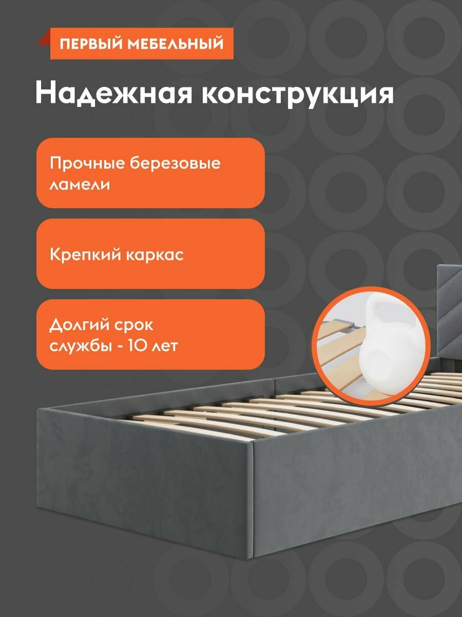 Отзывы на Кровать односпальная Джос 90х200 см, деревянная, с анатомическим основанием, с мягким изголовьем, Серый, велюр