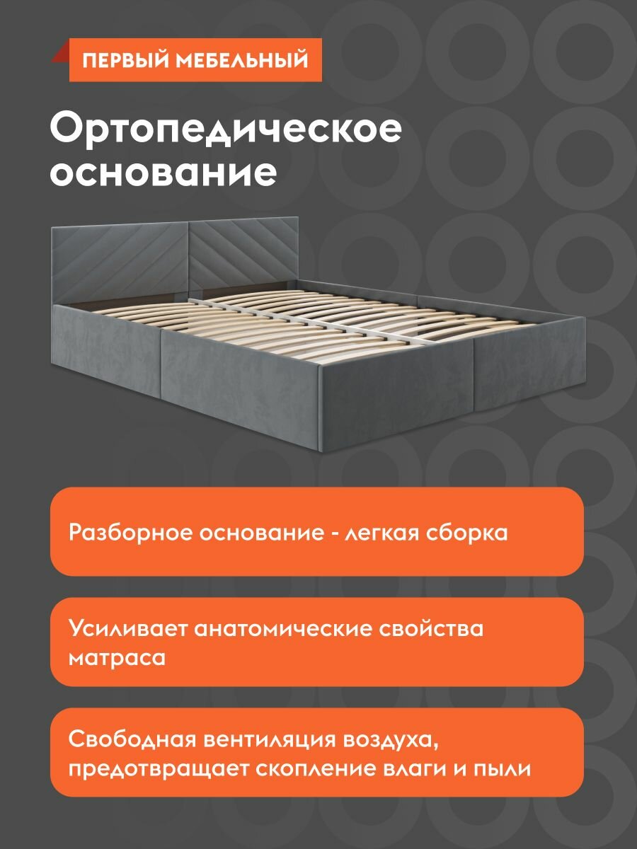 Кровать двуспальная Джос 140х200 см, деревянная, с анатомическим основанием, с мягким изголовьем, Серый, велюр информация: