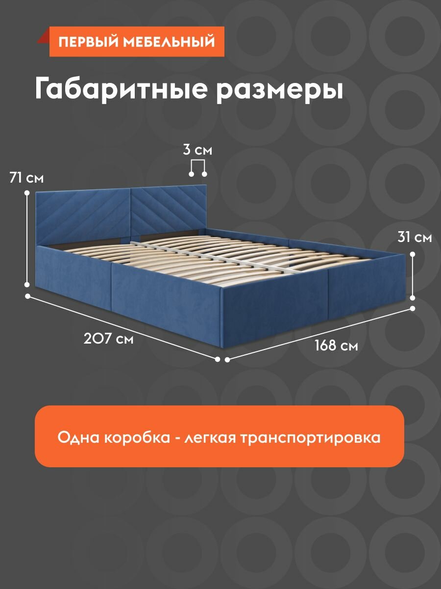 Отзывы на Кровать двуспальная Джос 160х200 см, деревянная, с анатомическим основанием, с мягким изголовьем, Синий, велюр