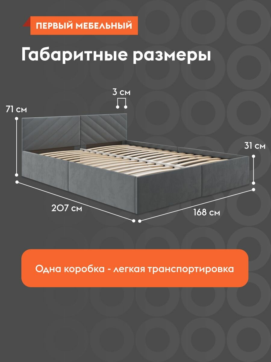 Отзывы на Кровать двуспальная Джос 160х200 см, деревянная, с анатомическим основанием, с мягким изголовьем, Серый, велюр