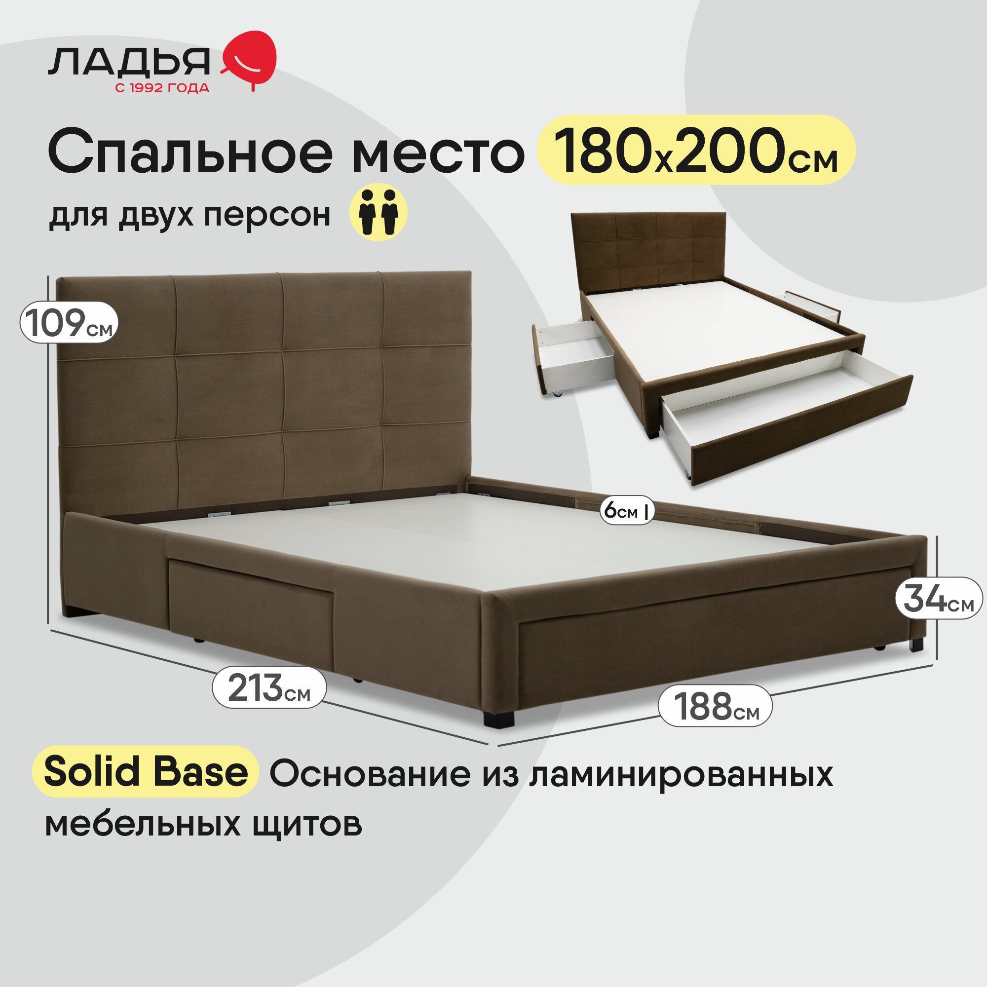 Двуспальная кровать Борба 180х200, с выдвижными ящиками, Ладья, с мягким изголовьем, Ultra Cocoa информация:
