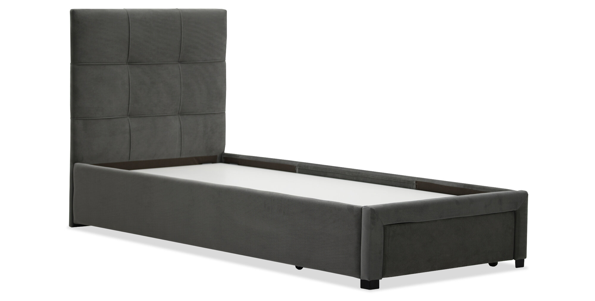 10 цен на Односпальная кровать Борба 90х200, с выдвижными ящиками, Ладья, с мягким изголовьем, Amigo Grey