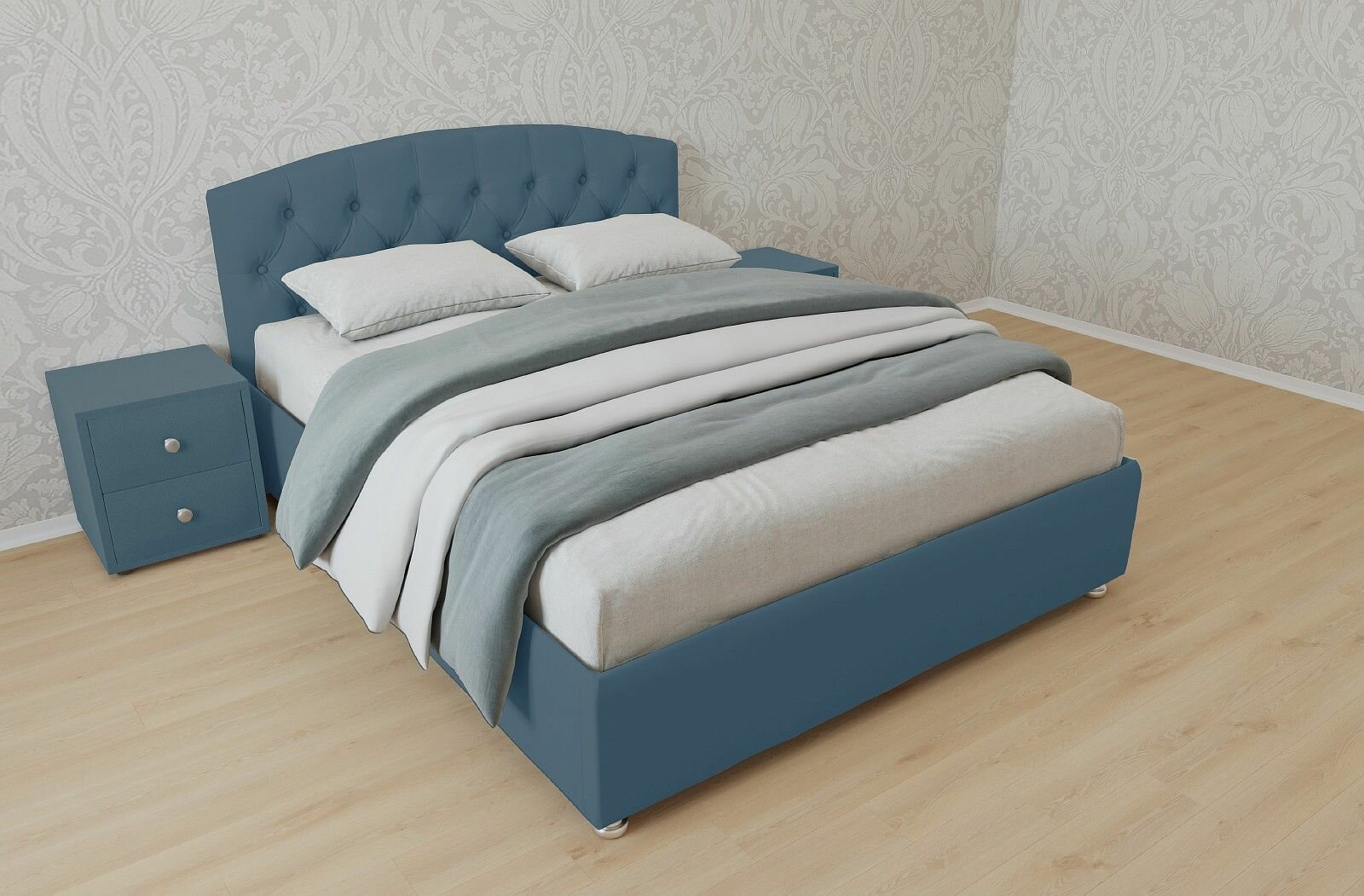 Двуспальная кровать Берлин 180x200 с подъемным механизмом и с коробом для белья велюр бирюзовый ножки 13 см хром 35 500 ₽