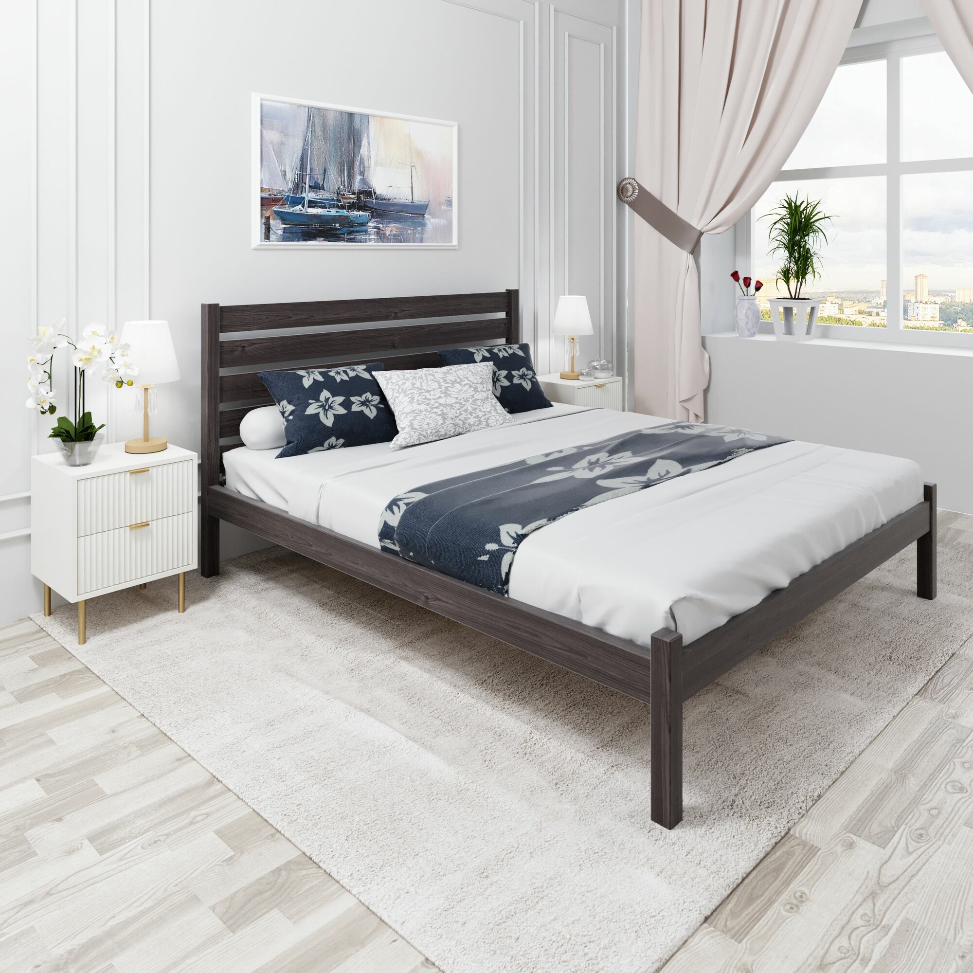 Кровать двуспальная Классика из массива сосны с высокой спинкой и сплошным основанием, 200х120 см (габариты 210х130), цвет антрацит 16 943 ₽