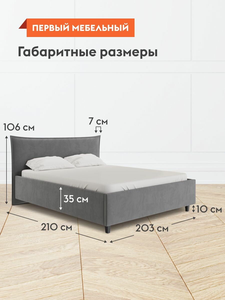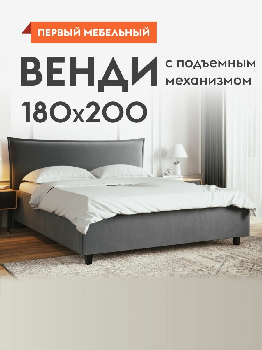 Кровать двуспальная Венди Люкс ПМ 180х200 см, с подъемным механизмом, с анатомическим основанием, Серый, велюр информация: