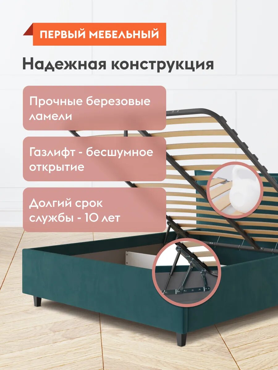 Отзывы на Кровать двуспальная Венди Люкс ПМ 180х200 см, с подъемным механизмом, с анатомическим основанием, Изумрудный, велюр