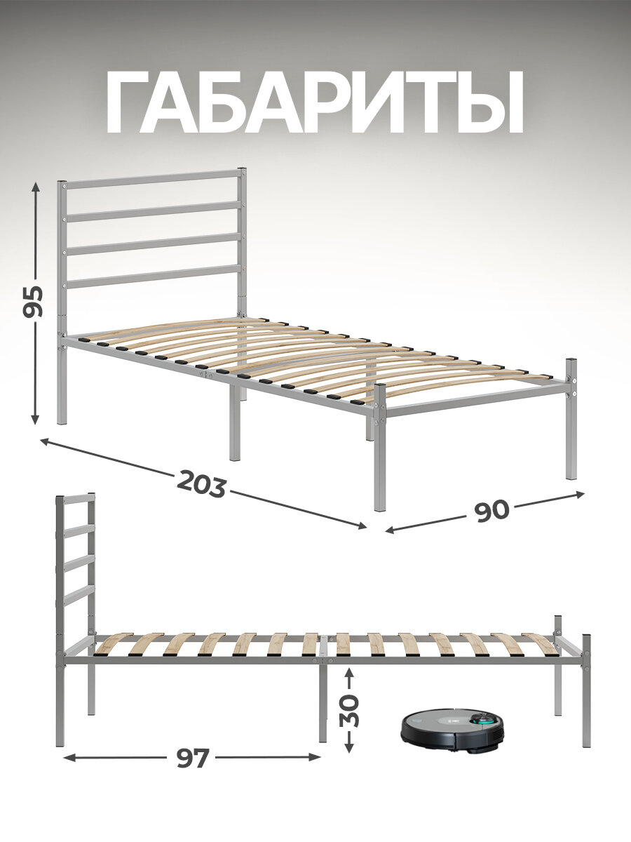 10 цен на Кровать металлическая Металика Г4 90х200 серая с держателями для матраса и доп. опорами
