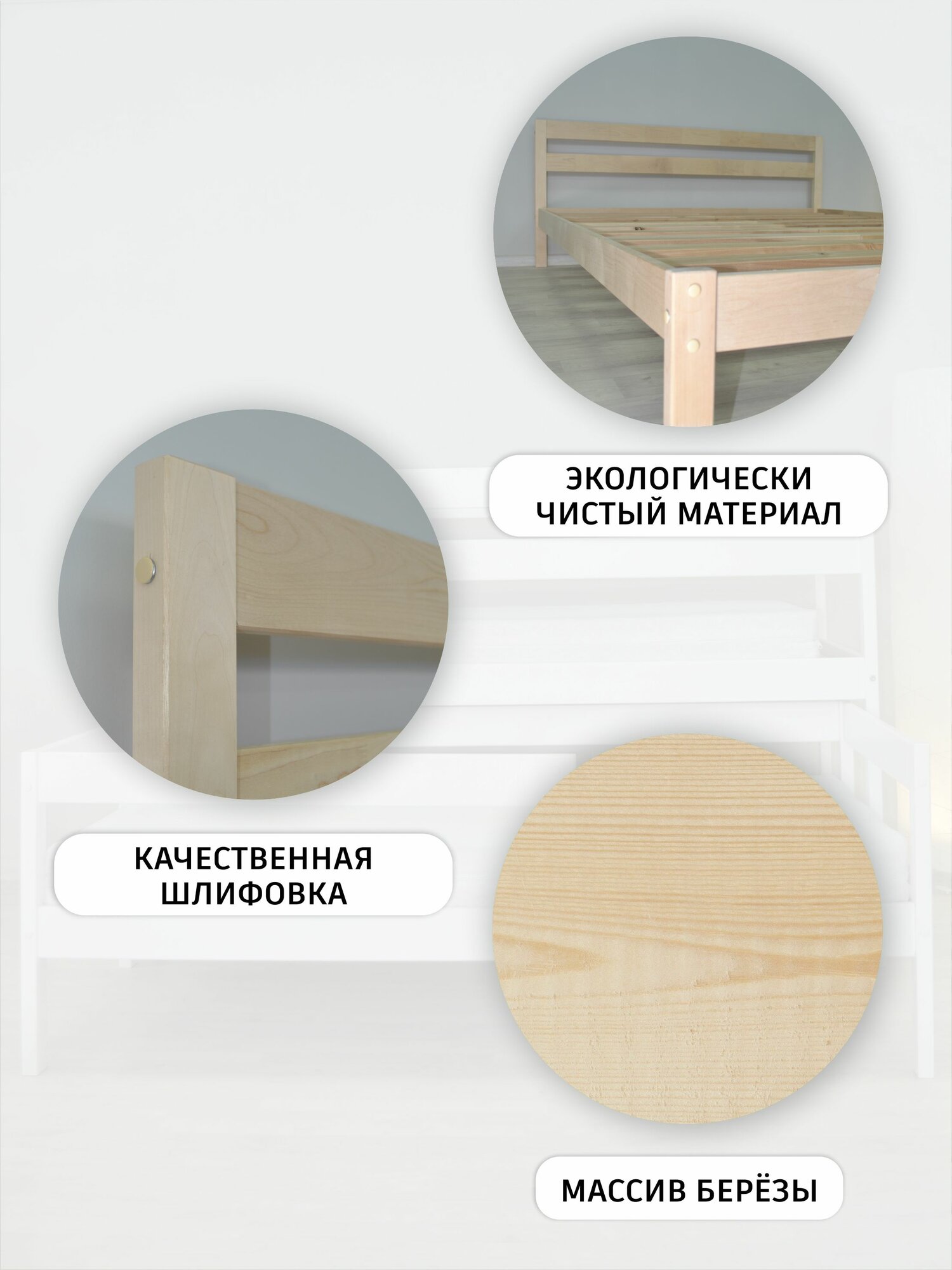 Двуспальная кровать из массива березы 120х200 недорого, белая безопасная эмаль, эффект пластика, экологичная для двоих 11 500 ₽