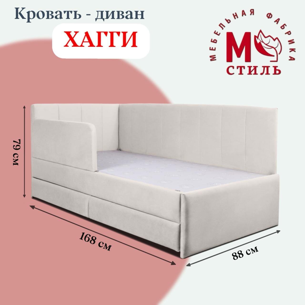 Кровать-диван Хагги 180*90 бежевая с защитным бортиком, ящиком для хранения 23 730 ₽