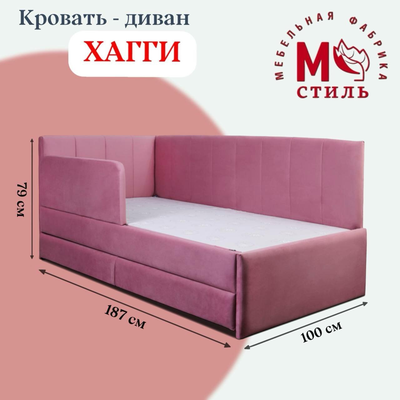 Кровать-диван Хагги 1800*900 розовая с дополнительным спальным местом + матрас информация: