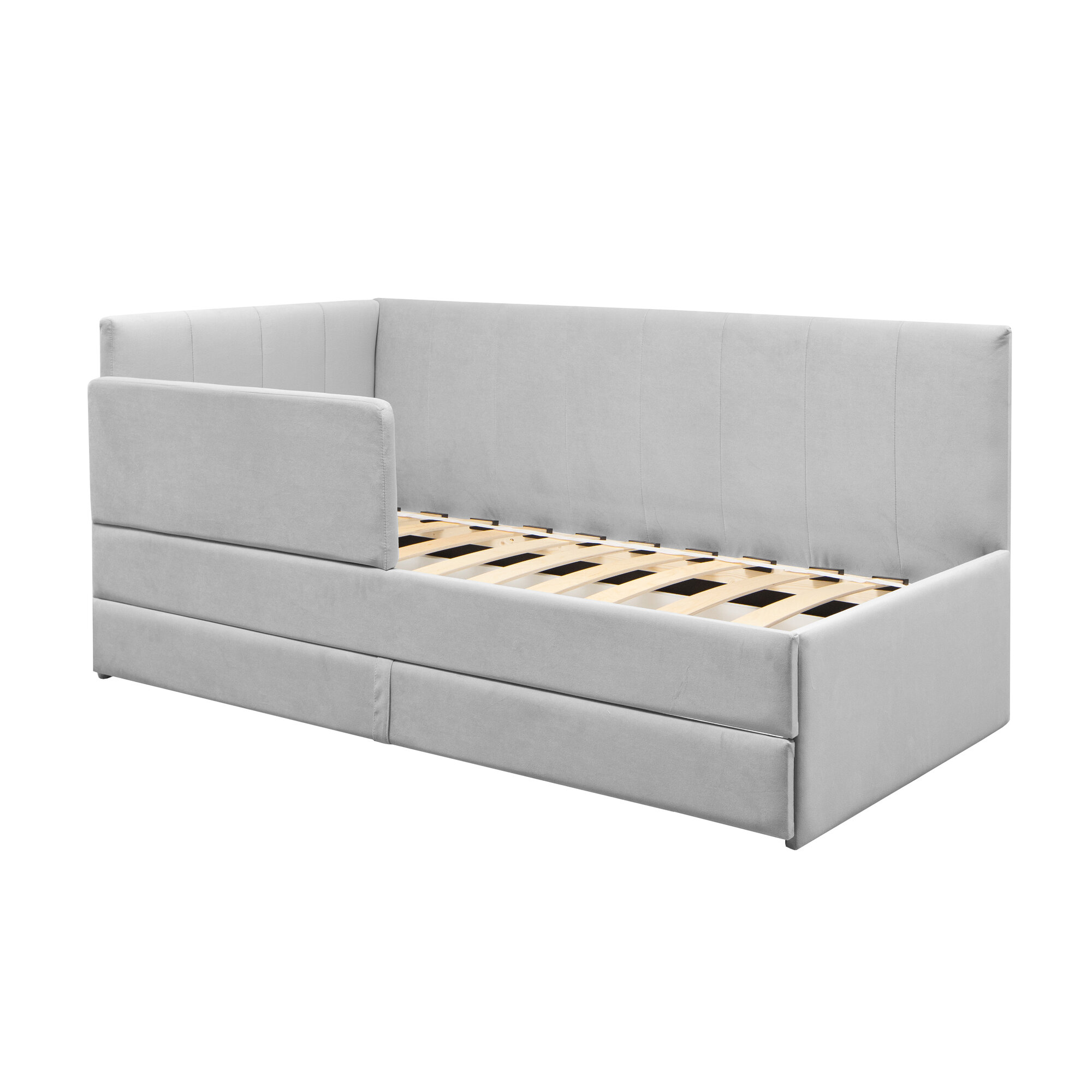 10 цен на Кровать Хагги 160*80 серый, универсальный угол, с защитным бортиком и ящиком для хранения