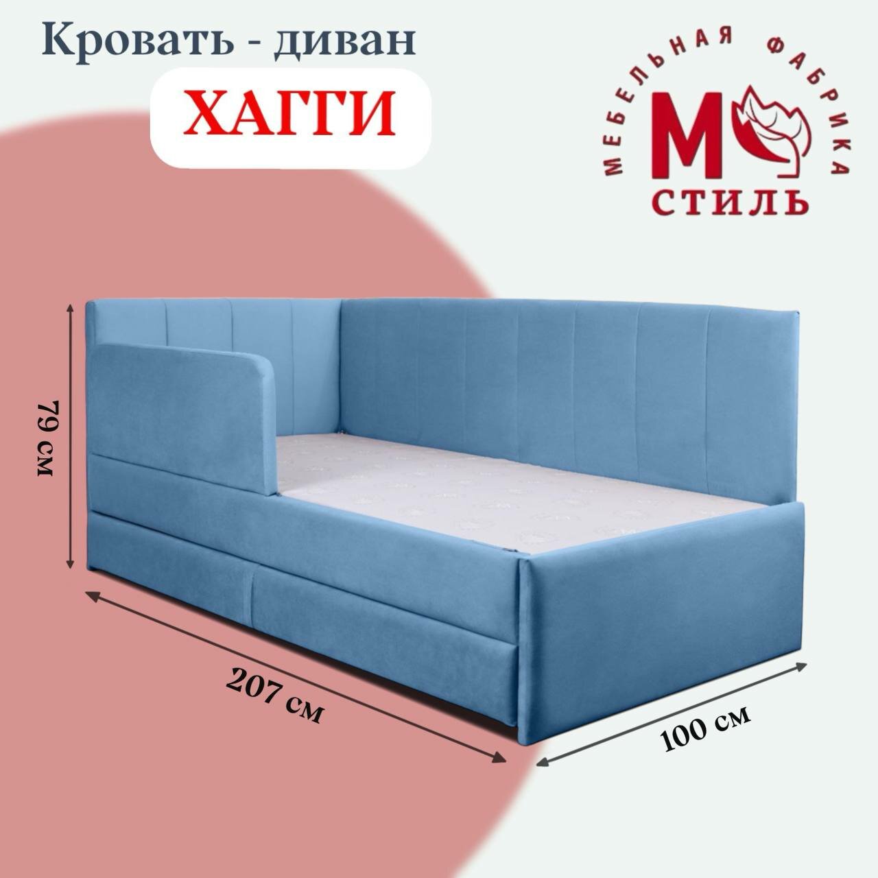 Кровать-диван Хагги 200*90 голубая с защитным бортиком, ящиком для хранения 24 709 ₽