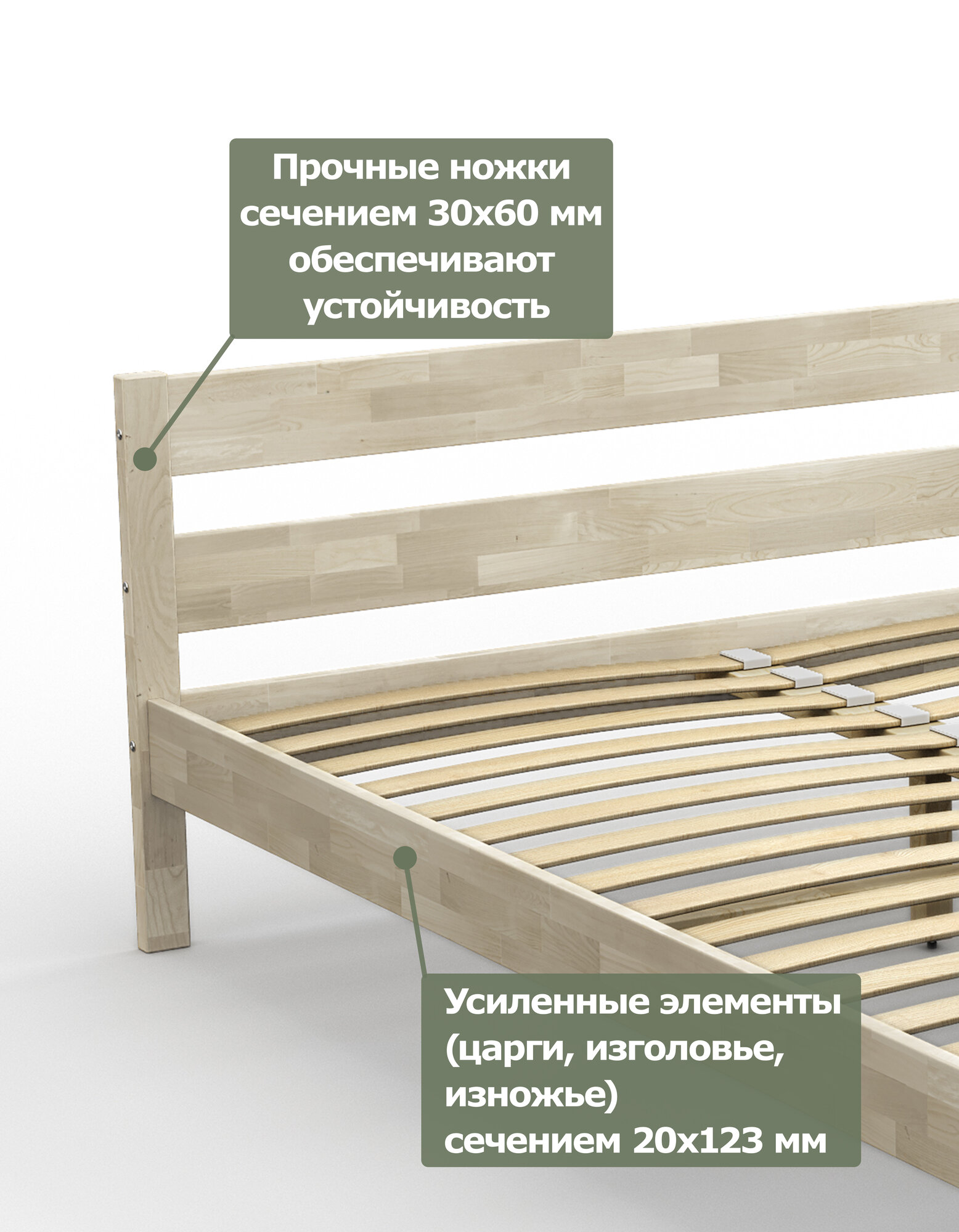 Кровать полутораспальная, 200х120см, Массив березы, Бесцветное масло, тилия 15 590 ₽