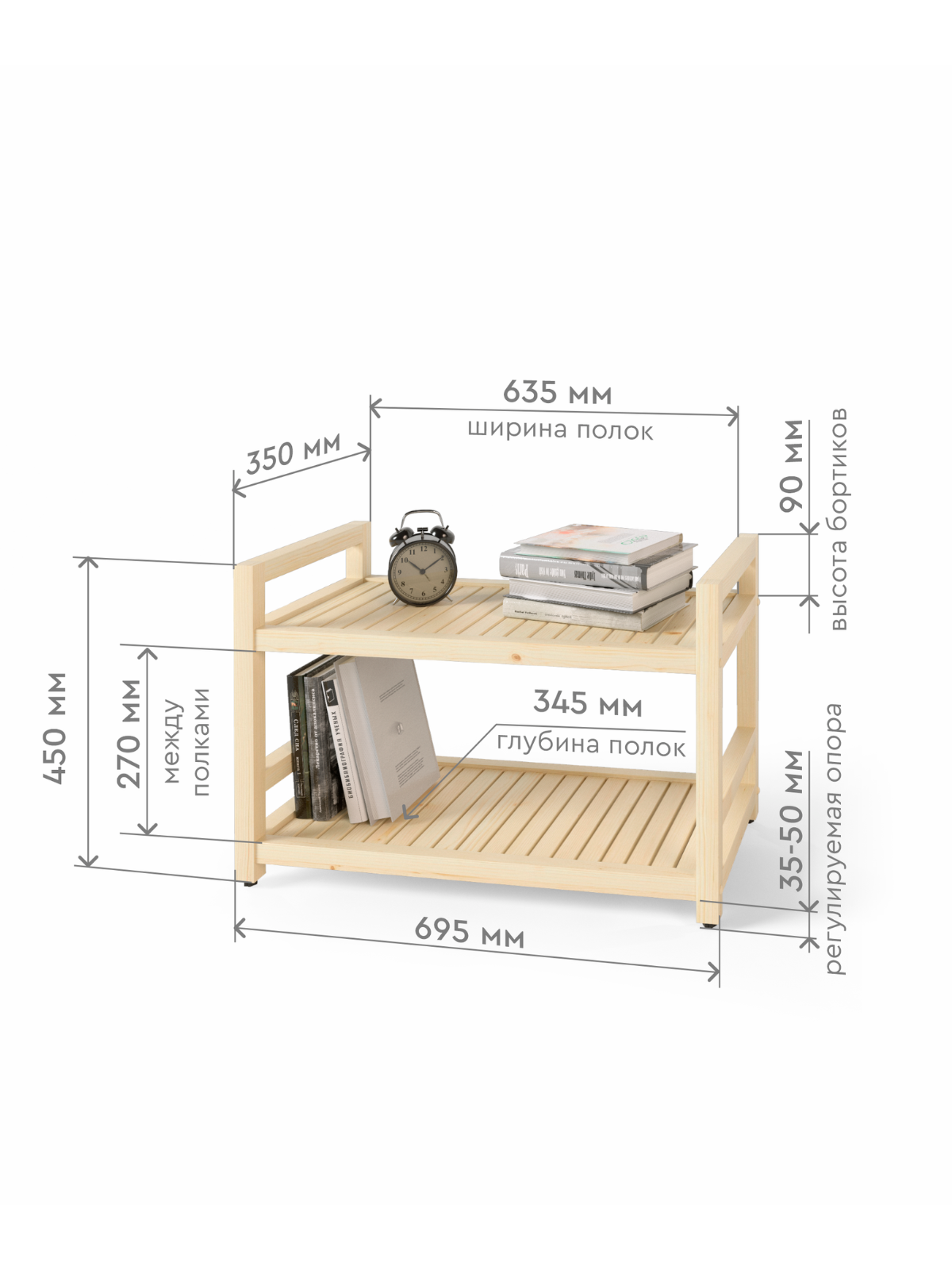 10 цен на Этажерка деревянная 45х70х35 см, тумба универсальная 2 полки