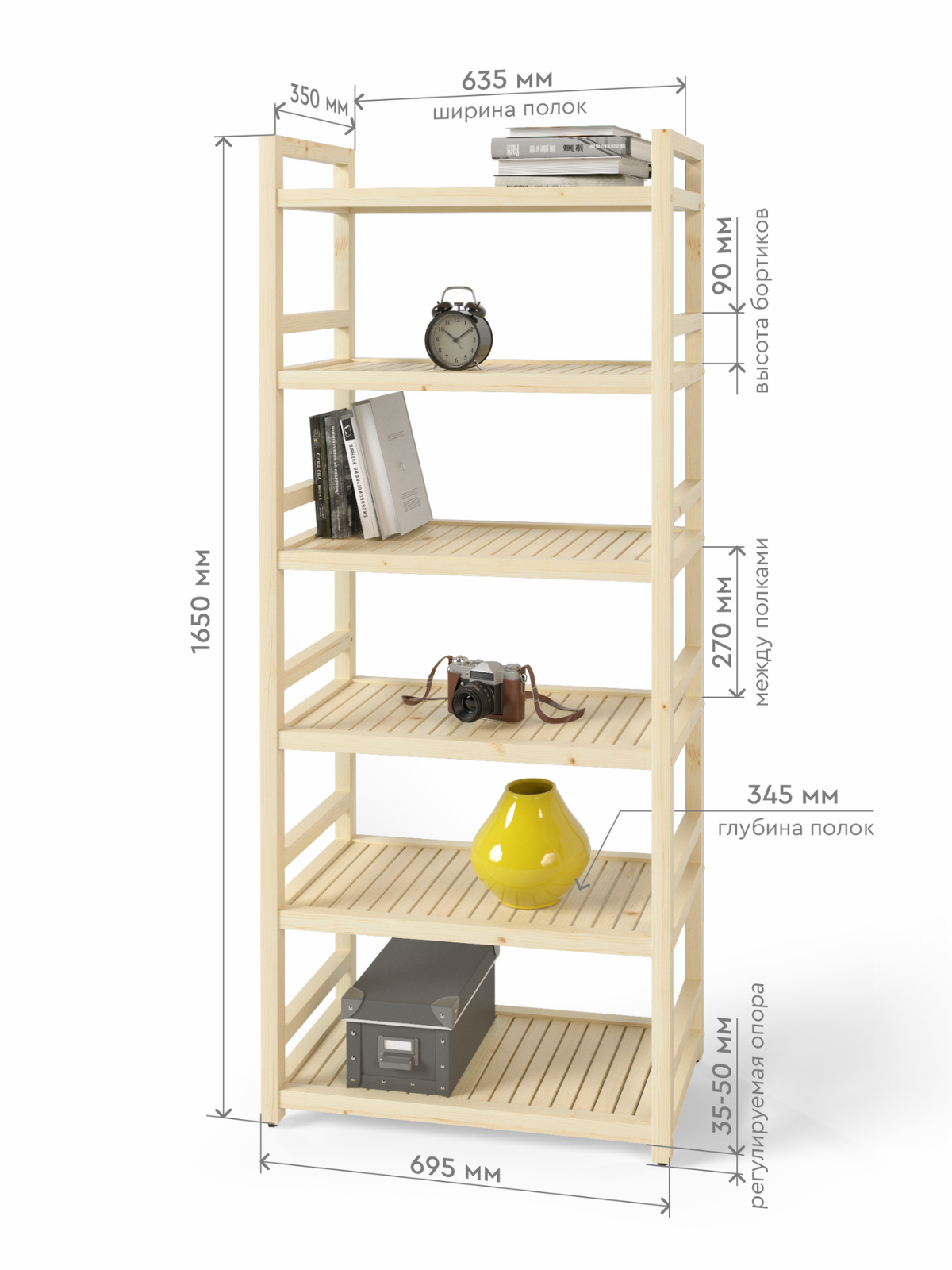 Отзывы на Стеллаж деревянный напольный 165х70х35 см, универсальный 6 полок