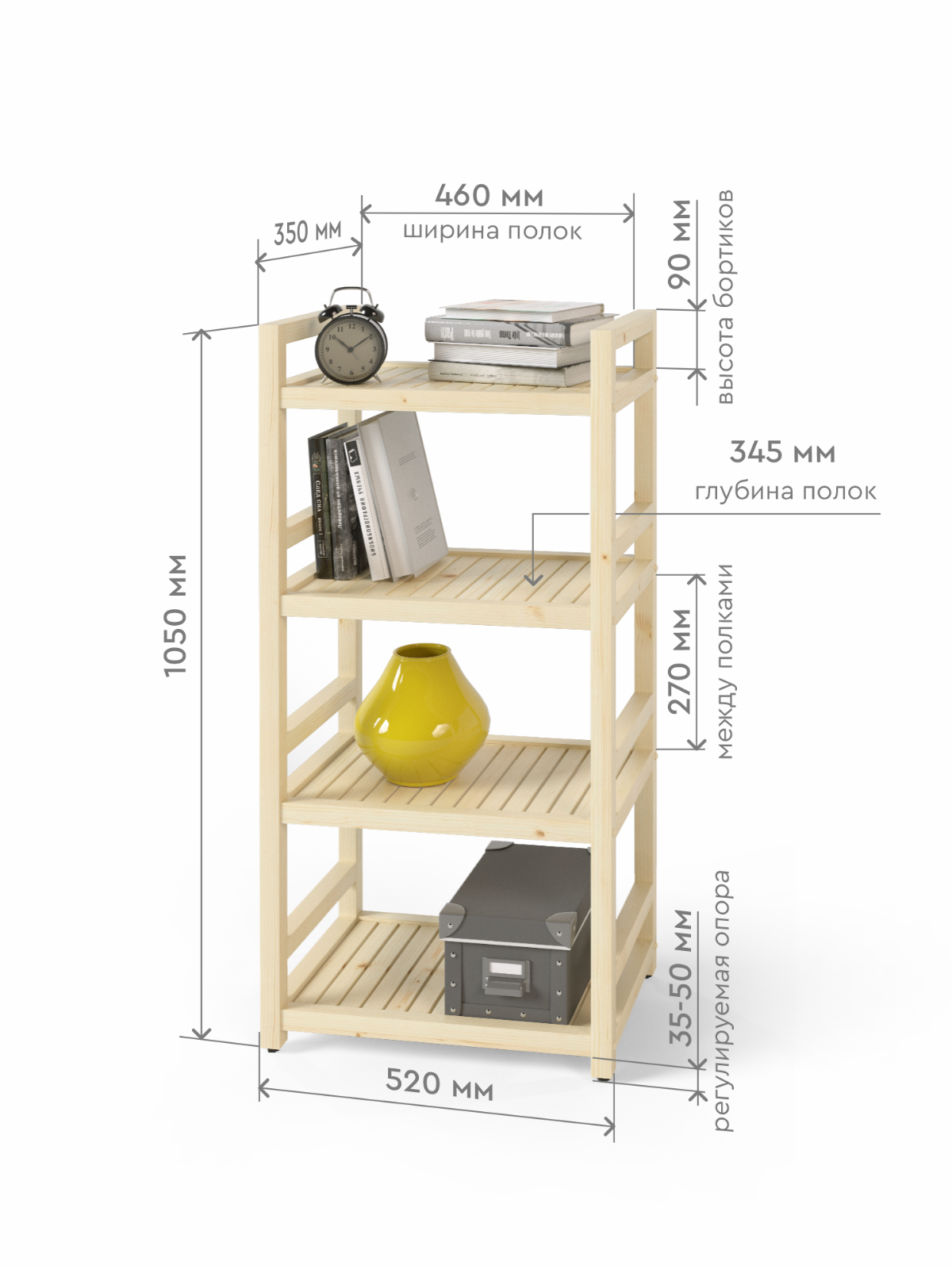 10 цен на Стеллаж деревянный напольный 105х52х35 см, универсальный 4 полки