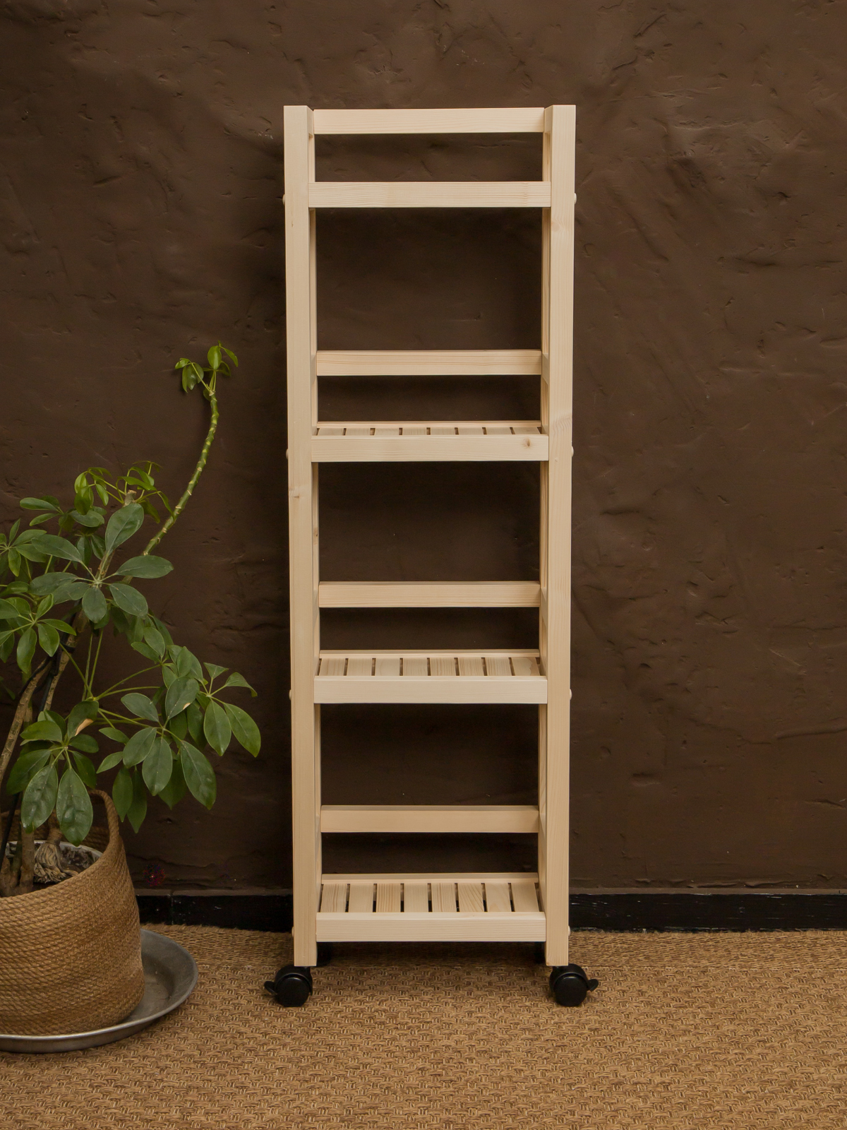 Отзывы на Этажерка на колесиках 105х35х17 см, стеллаж деревянный универсальный 4 полки