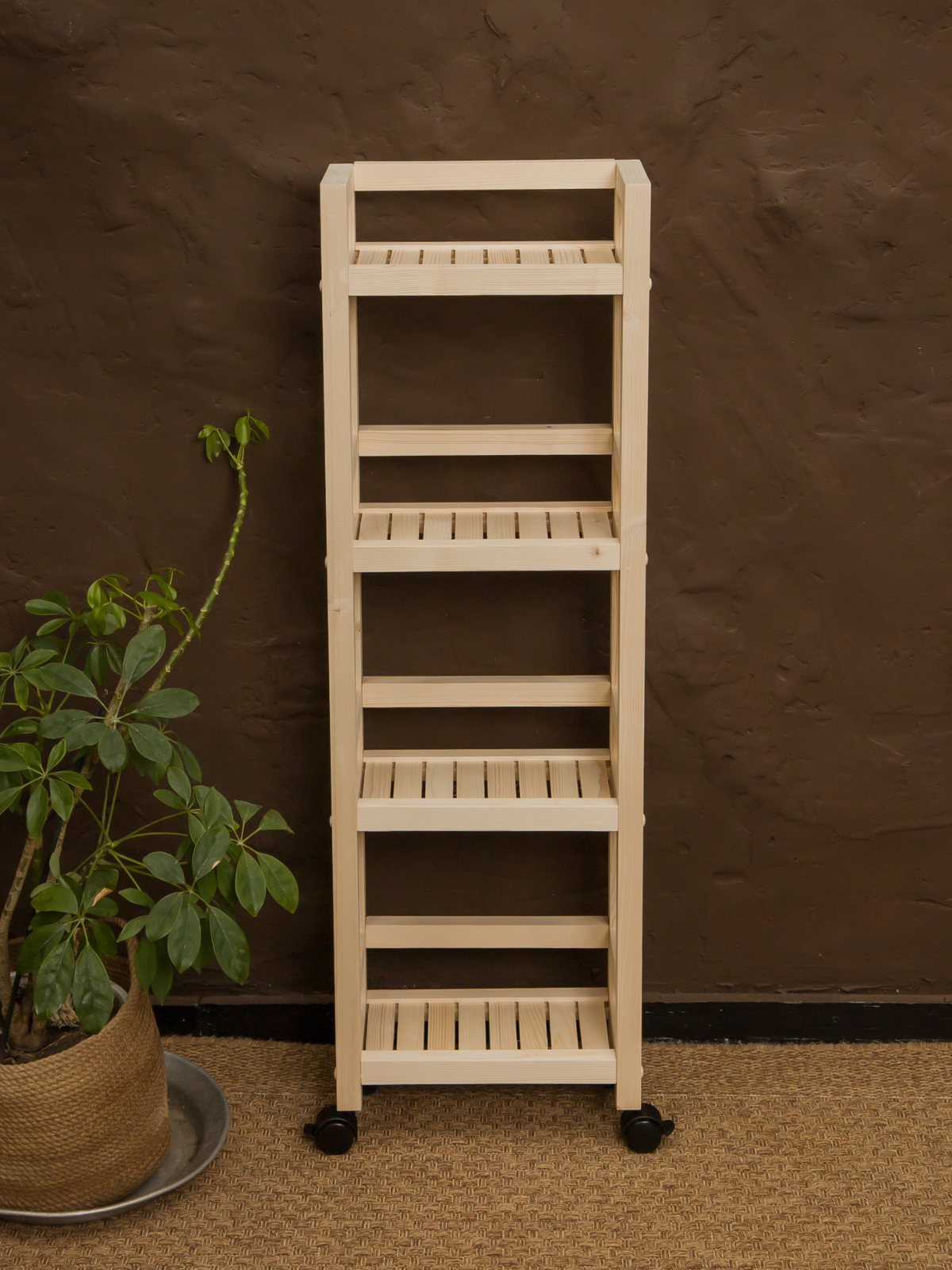 10 цен на Этажерка на колесиках 105х35х17 см, стеллаж деревянный универсальный 4 полки