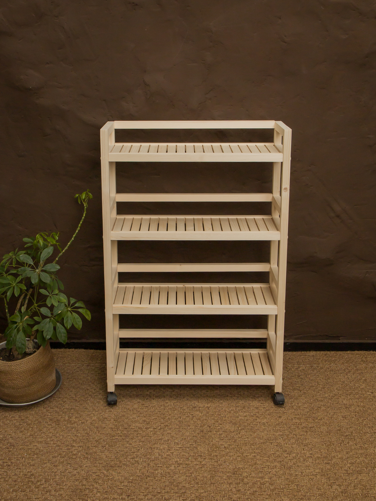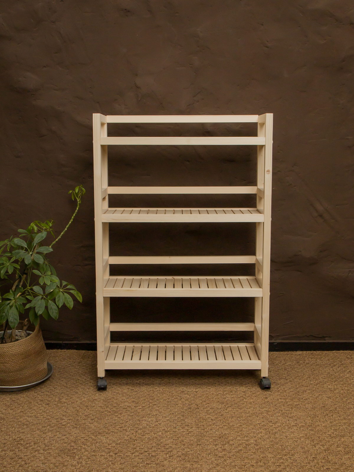 Отзывы на Этажерка на колесиках 105х70х25 см, стеллаж деревянный универсальный 4 полки