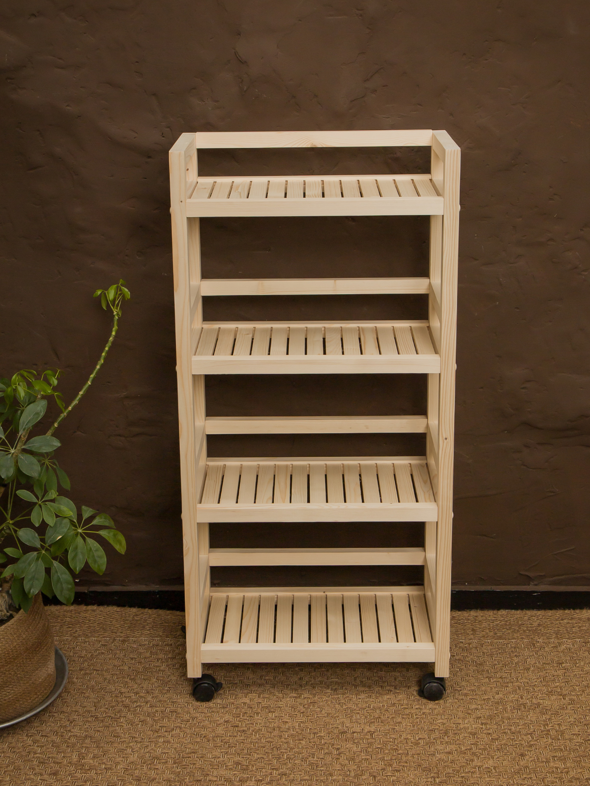 Отзывы на Этажерка на колесиках 105х52х25 см, стеллаж деревянный универсальный 4 полки