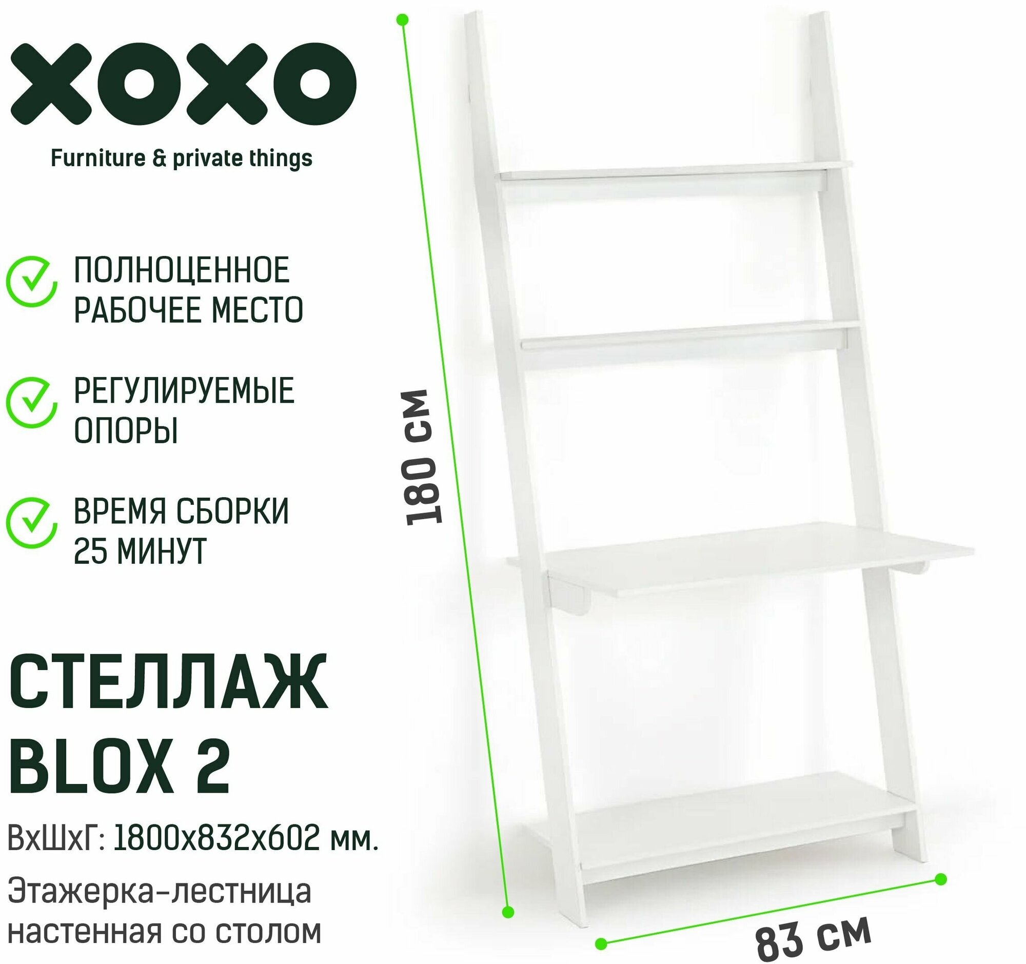 Стеллаж деревянный напольный белый с письменным столом Blox 2 XOXO информация: