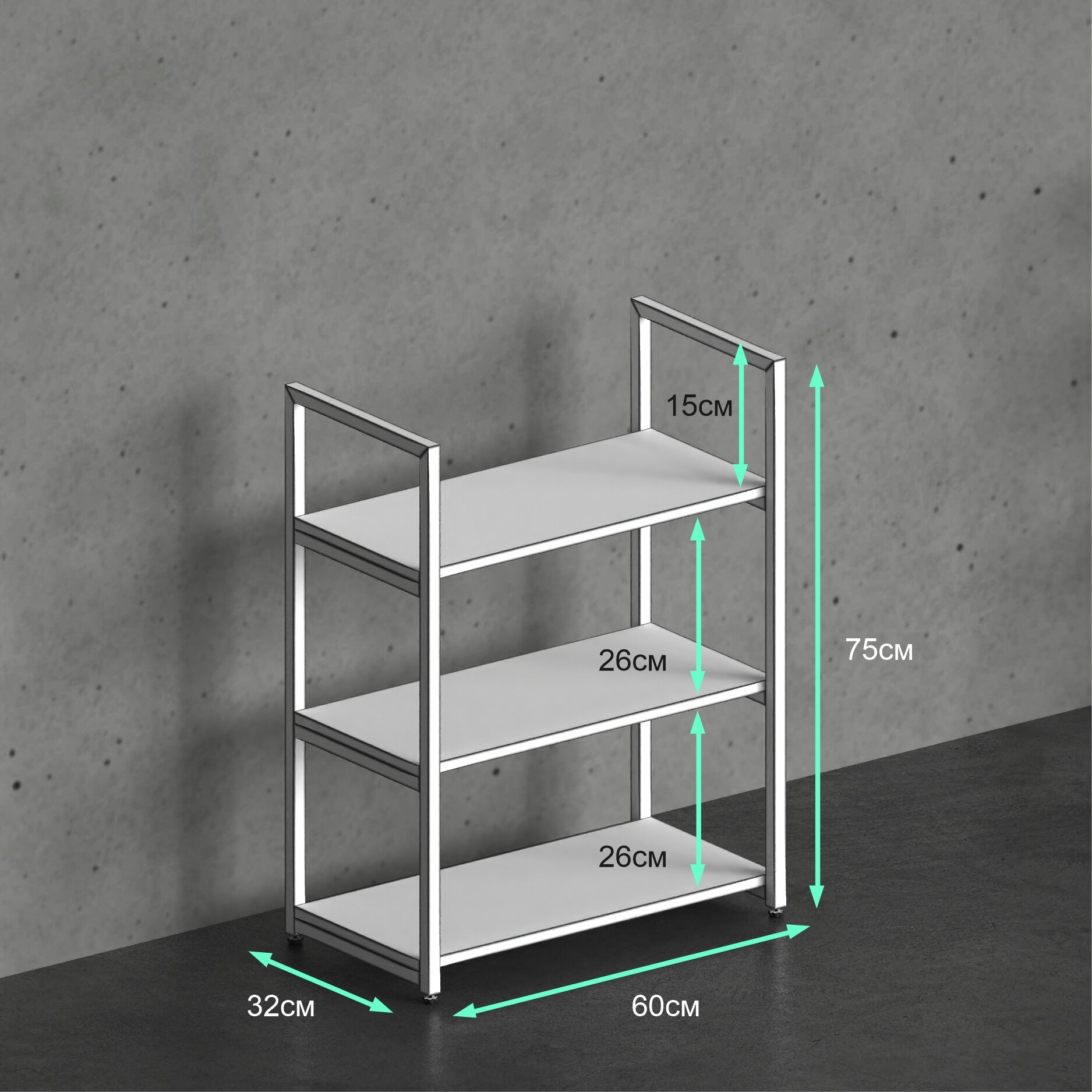 Стеллаж металлический напольный DK_Loft, 3 полки дуб Сонома информация:
