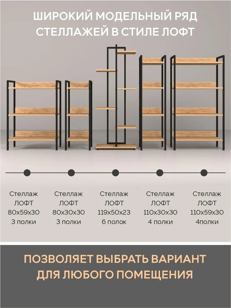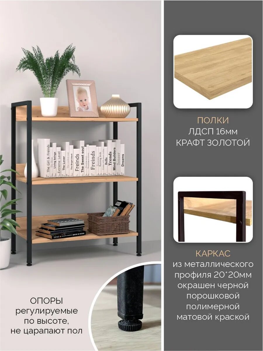10 цен на Стеллаж металлический Лофт 3 полки, ЛДСП/ металл
