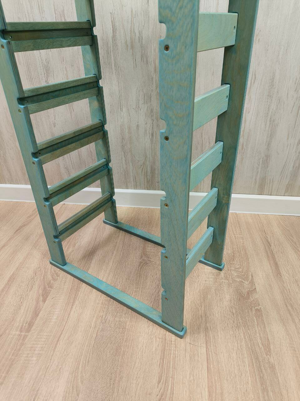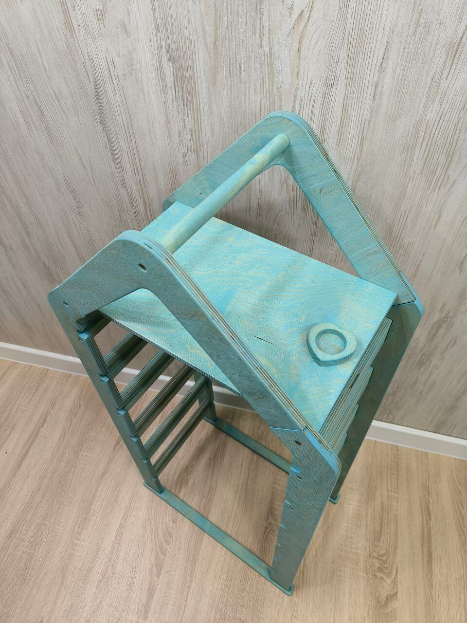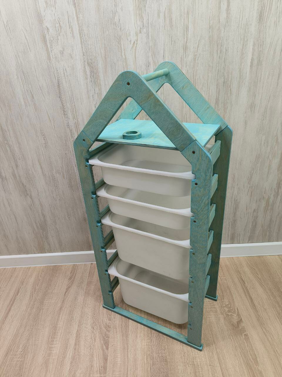 Стеллаж деревянный напольный для игрушек с полкой бирюзовый информация: