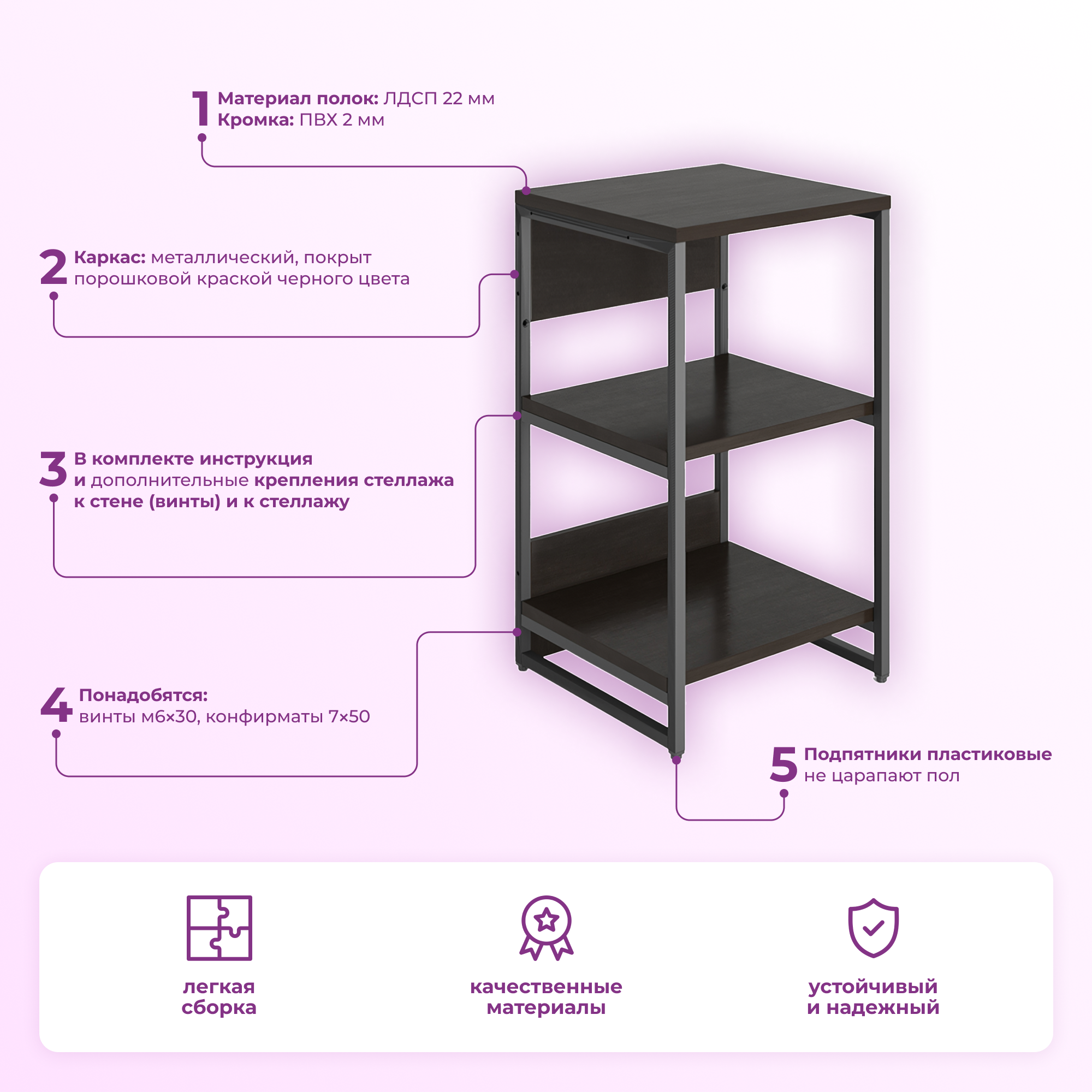 Стеллаж Матисс, цвет венге, 45*44*81см, Delicatex информация: