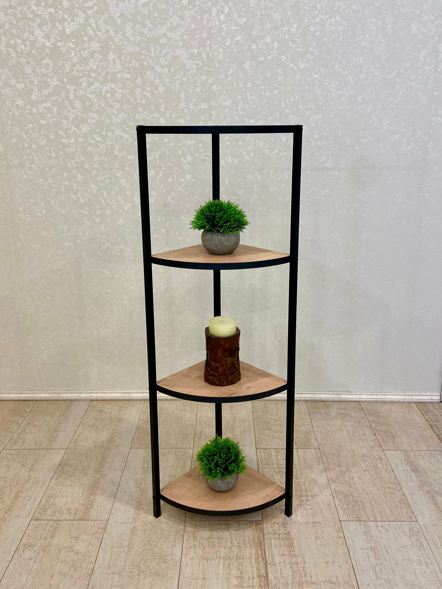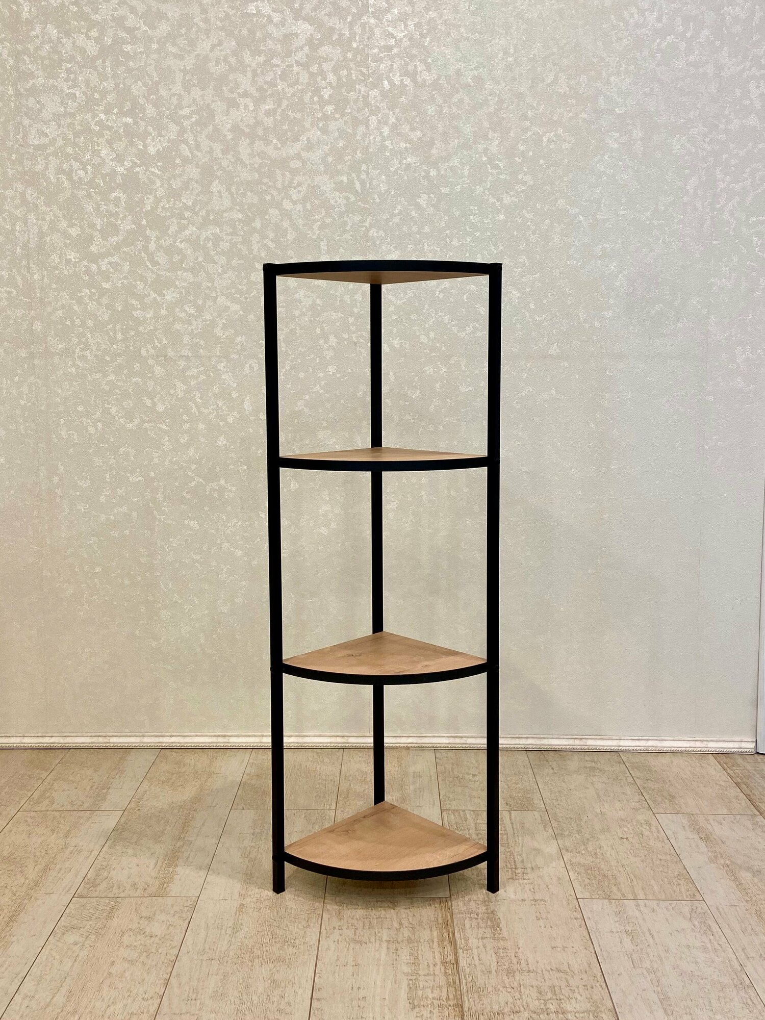 Отзывы на Этажерка угловая VIVA 423-100 для комнатных растений 4 секции металл, ЛДСП, черная, дуб бунратти+черная окантовка