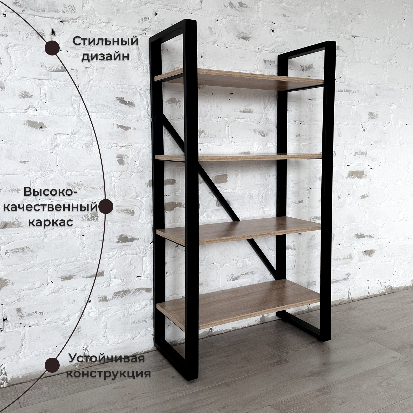 Отзывы на Стеллаж металлический напольный, DK Loft, 62х32х116, черный/дуб сонома