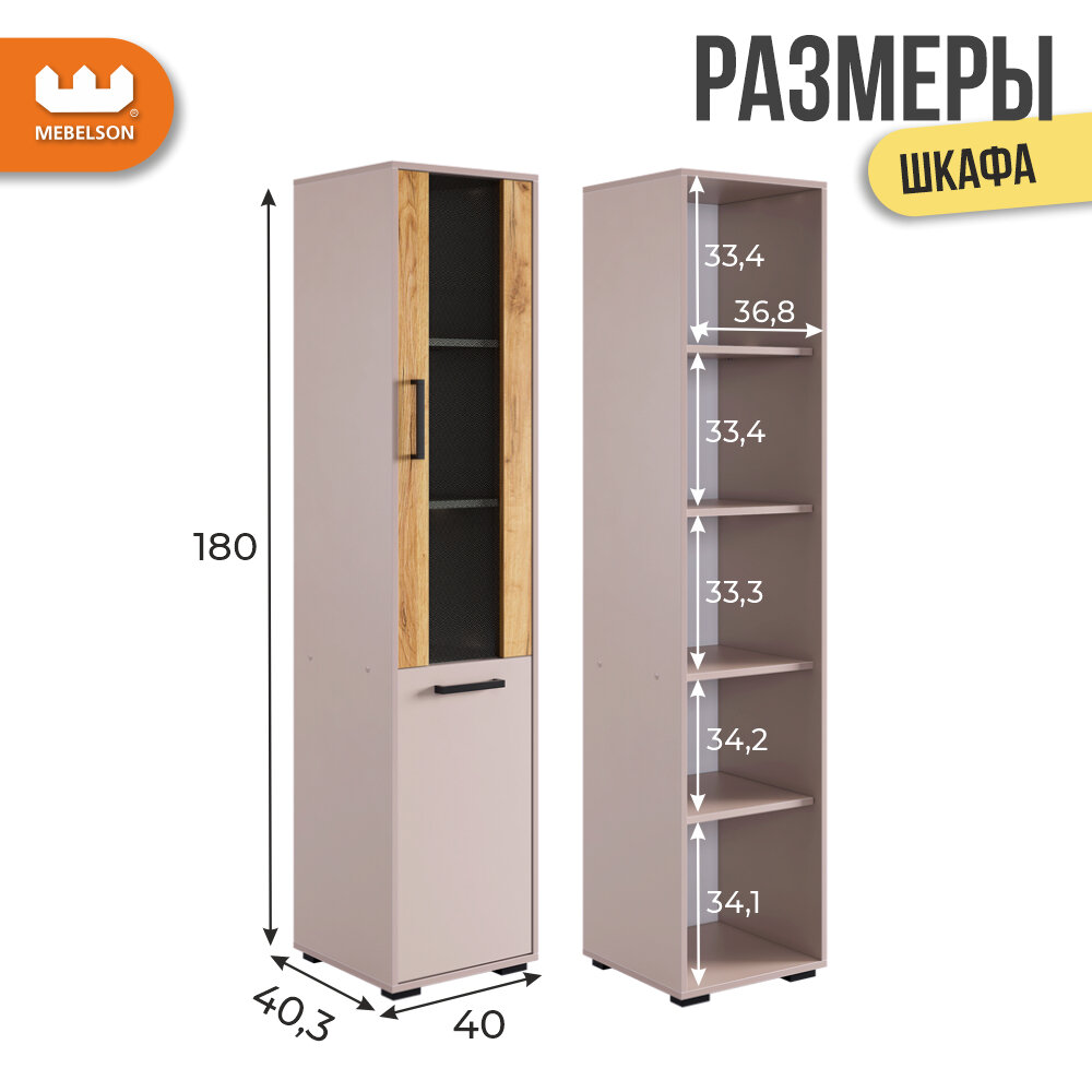 Стеллаж с полками для книг и документов "Лайт-2", цвет Кашемир/дуб крафт золотой, 40*40,3*180 см, Mebelson информация: