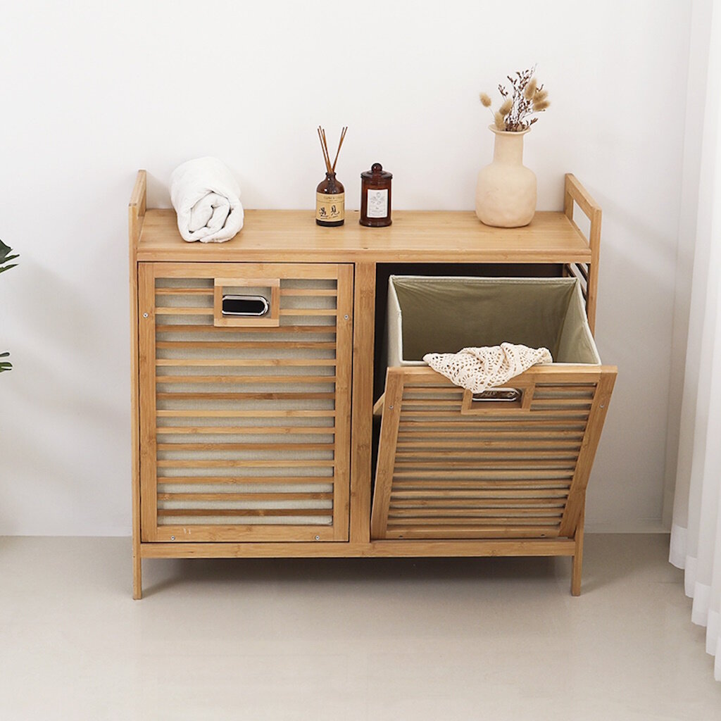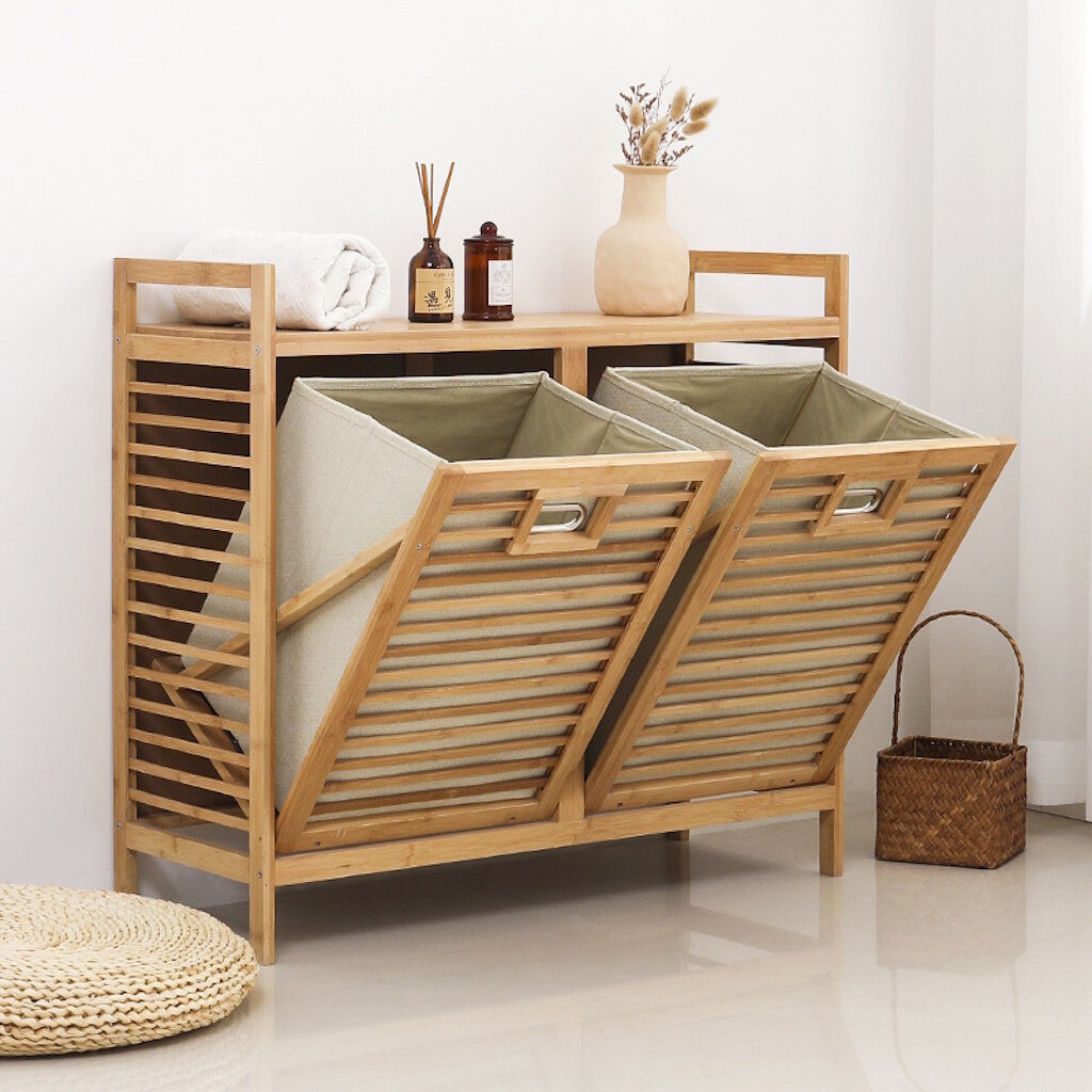 Отзывы на Стеллаж для ванной с корзинами для белья Bambuchka из бамбука, Этажерка для ванной, размер 80х30х72 см