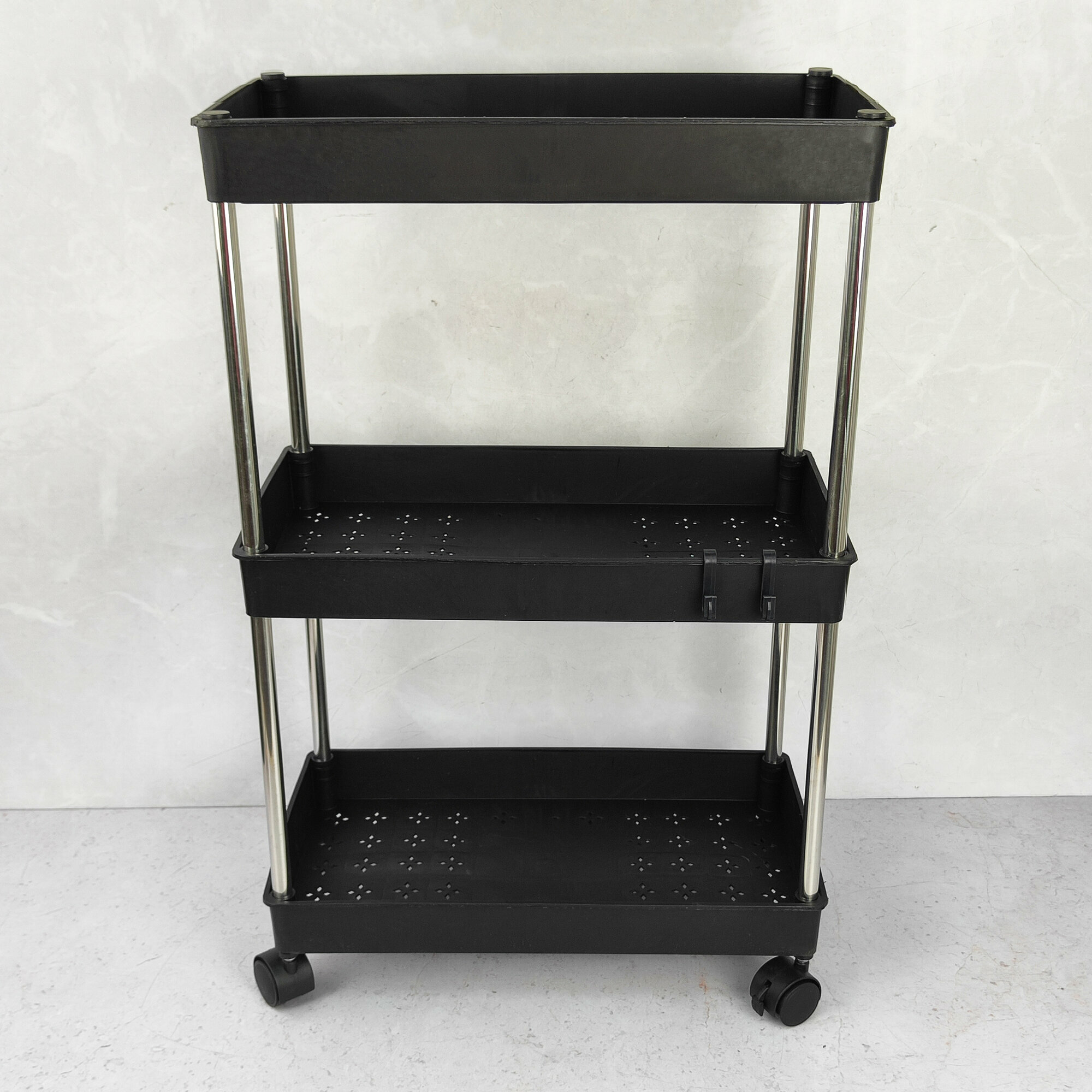 Отзывы на Этажерка пластиковая 3-х ярусная 40*22*64 см на колесах черный Baizheng