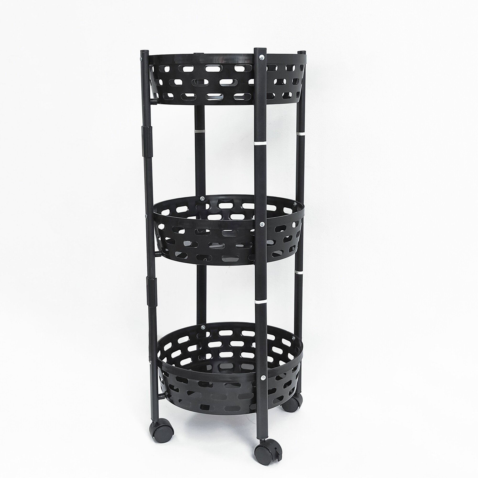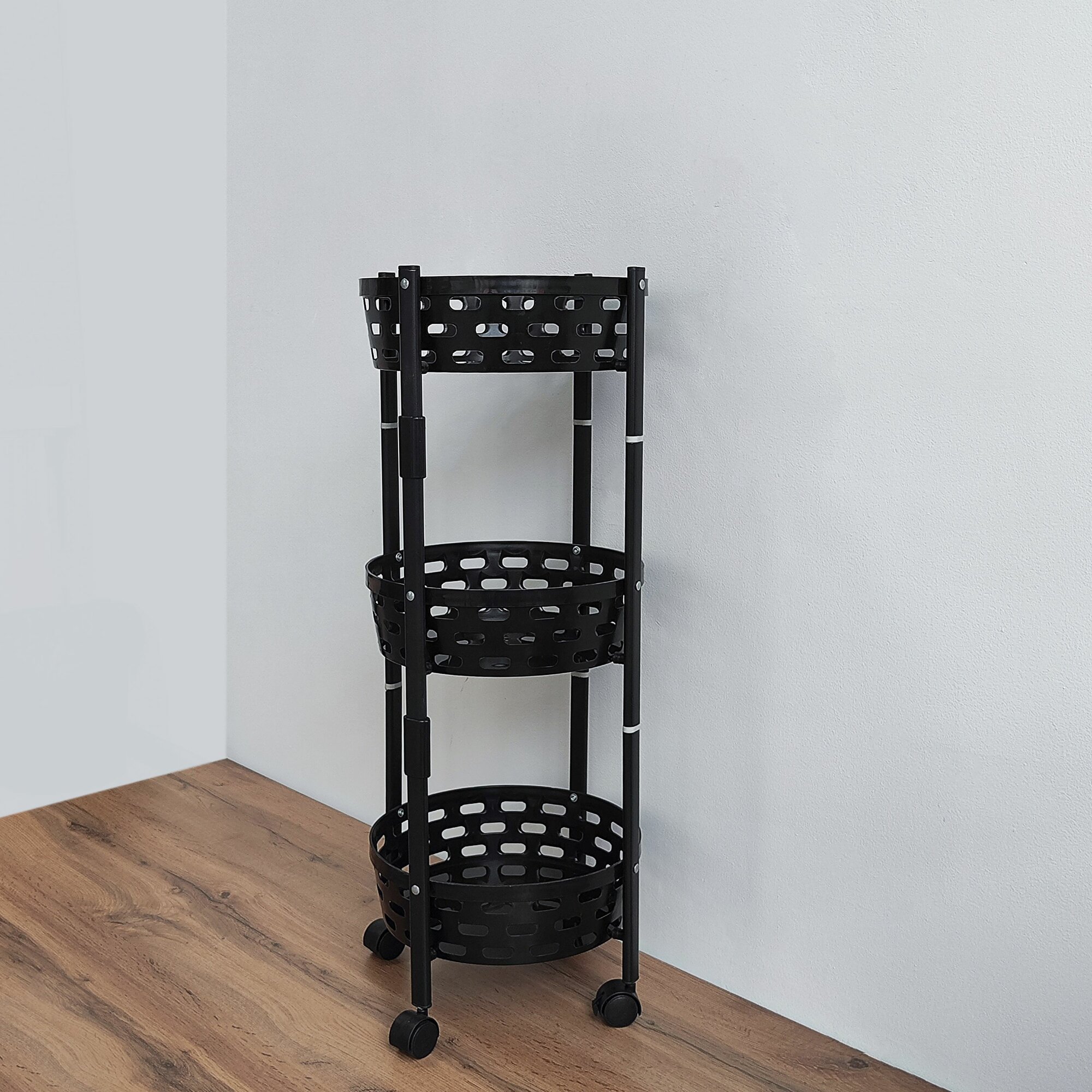 Этажерка 3х ярусная складная на колесиках пластиковая, черная информация: