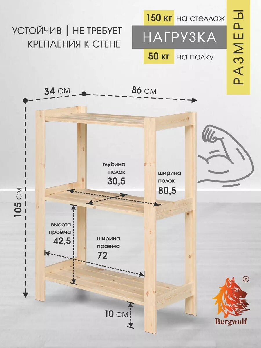 Стеллаж деревянный 105*86*34 см, отшлифован, нагрузка 150 кг информация: