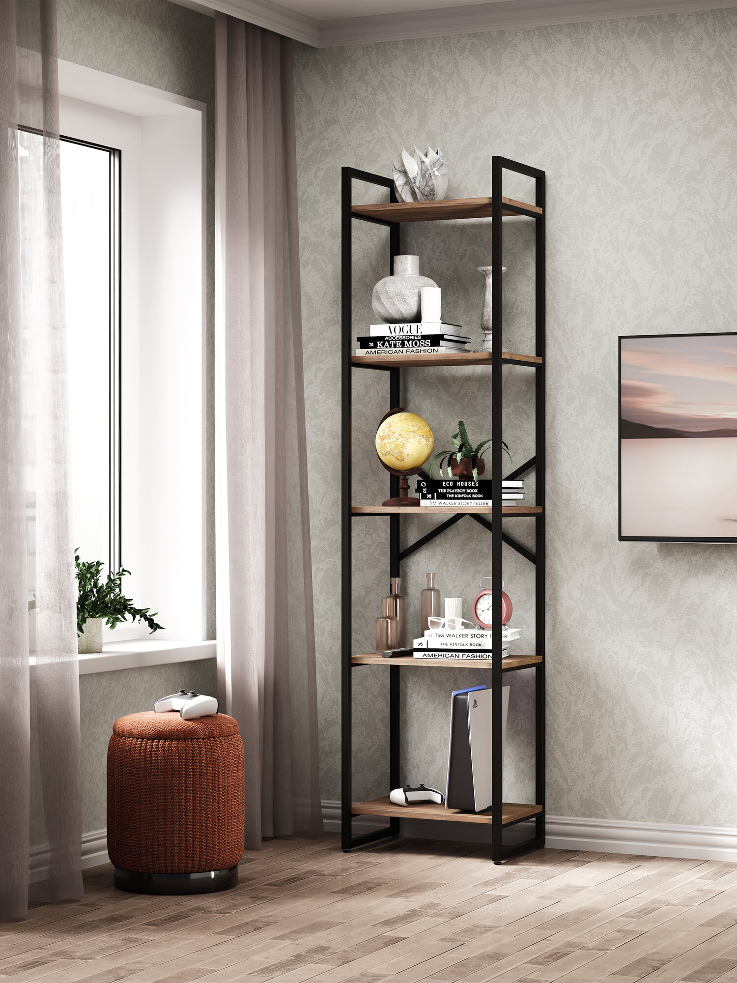 Стеллаж SHARLI-45, 5 полок, металлический каркас, крепление к стене, цвет Американский орех 180 х 31 х 45 см 7 500 ₽