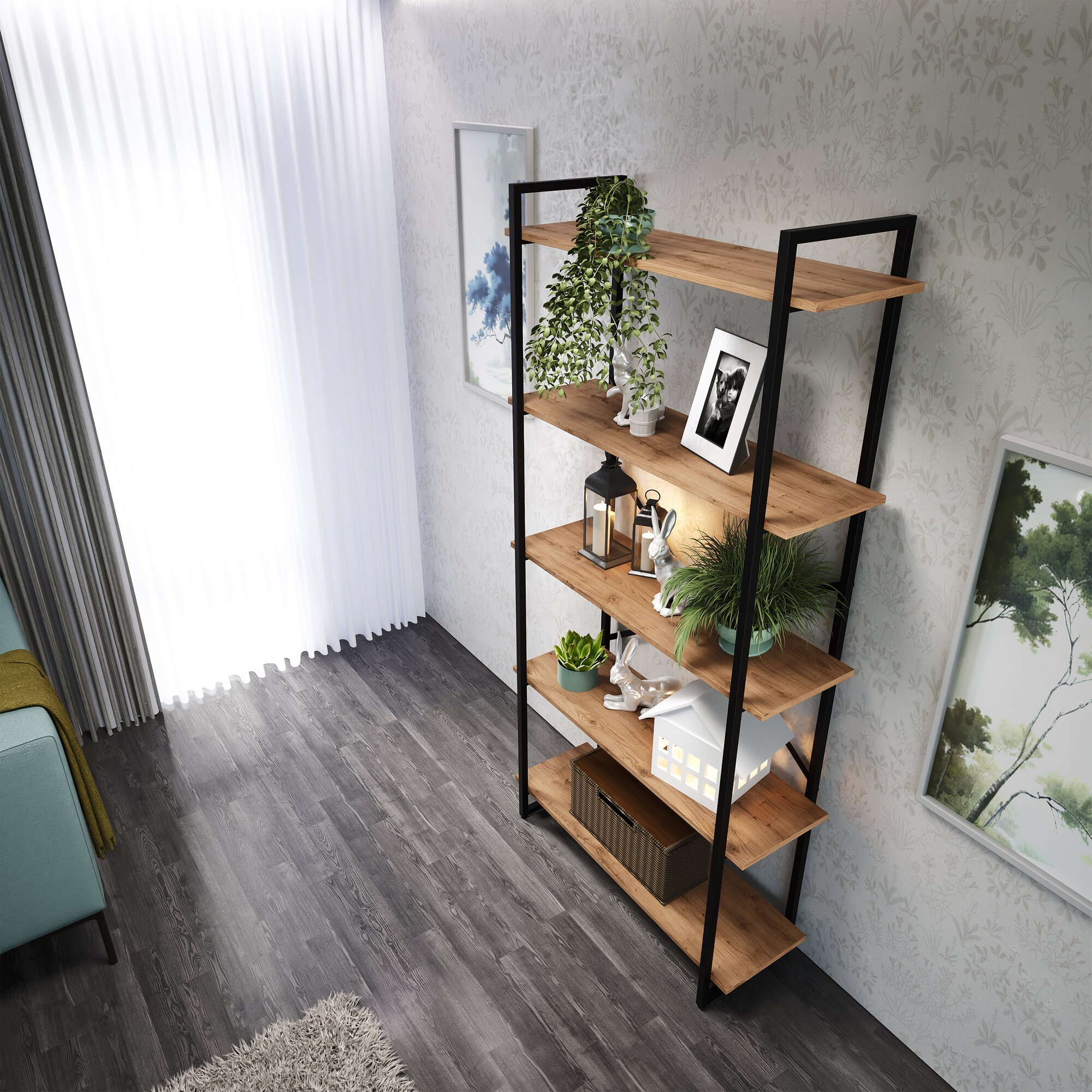 Стеллаж SHARLI-45, 5 полок, металлический каркас, крепление к стене, цвет Дуб Ниагара 180 х 31 х 45 см 7 500 ₽