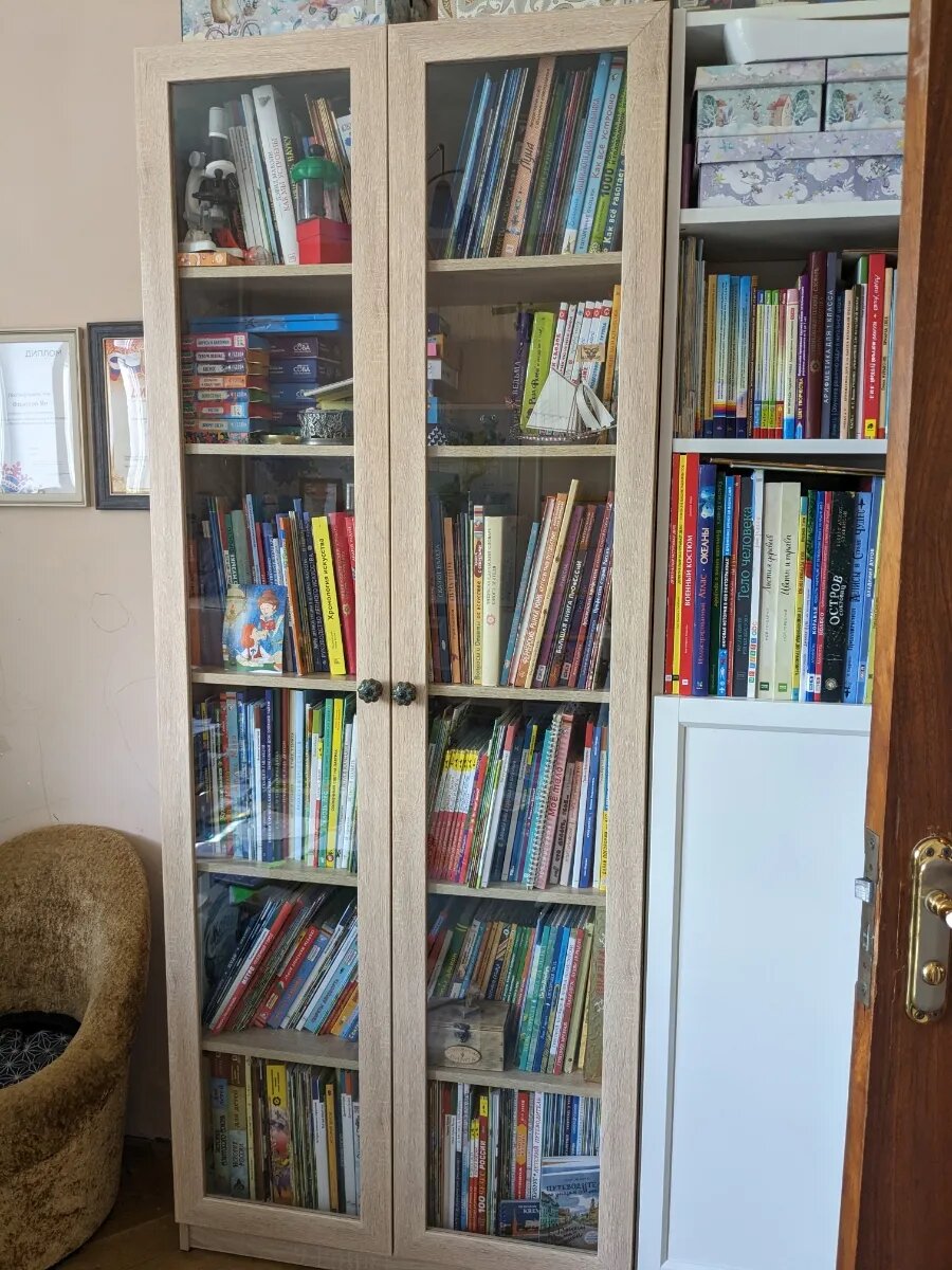 Шкаф стеллаж для книг с полками Билли 12 Дуб Сонома светлый 120*30*202 ЛДСП со стеклянными и глухими дверцами 23 980 ₽