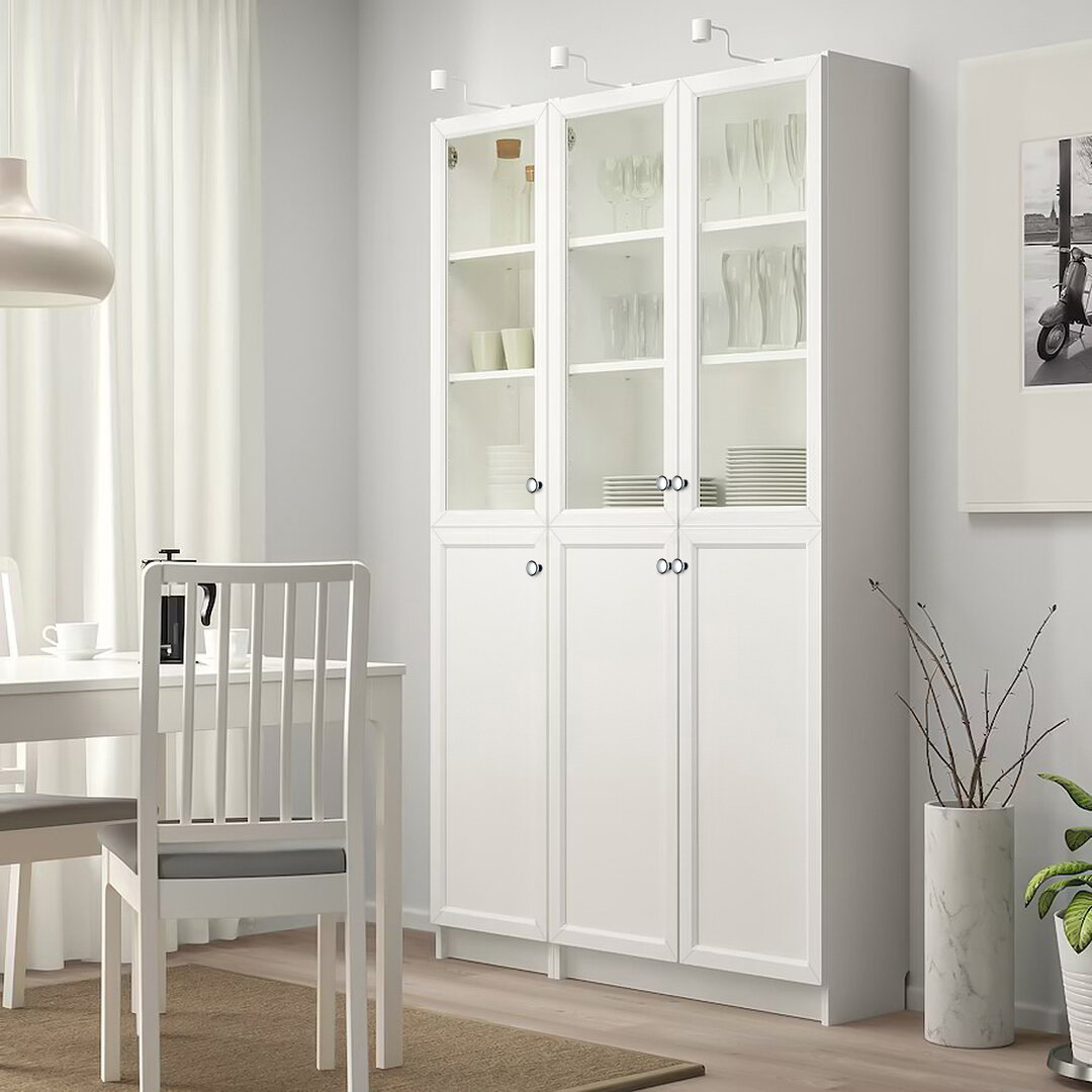 Отзывы на Шкаф стеллаж для книг с полками Билли 12 белый 120*30*202 ЛДСП со стеклянными и глухими дверцами