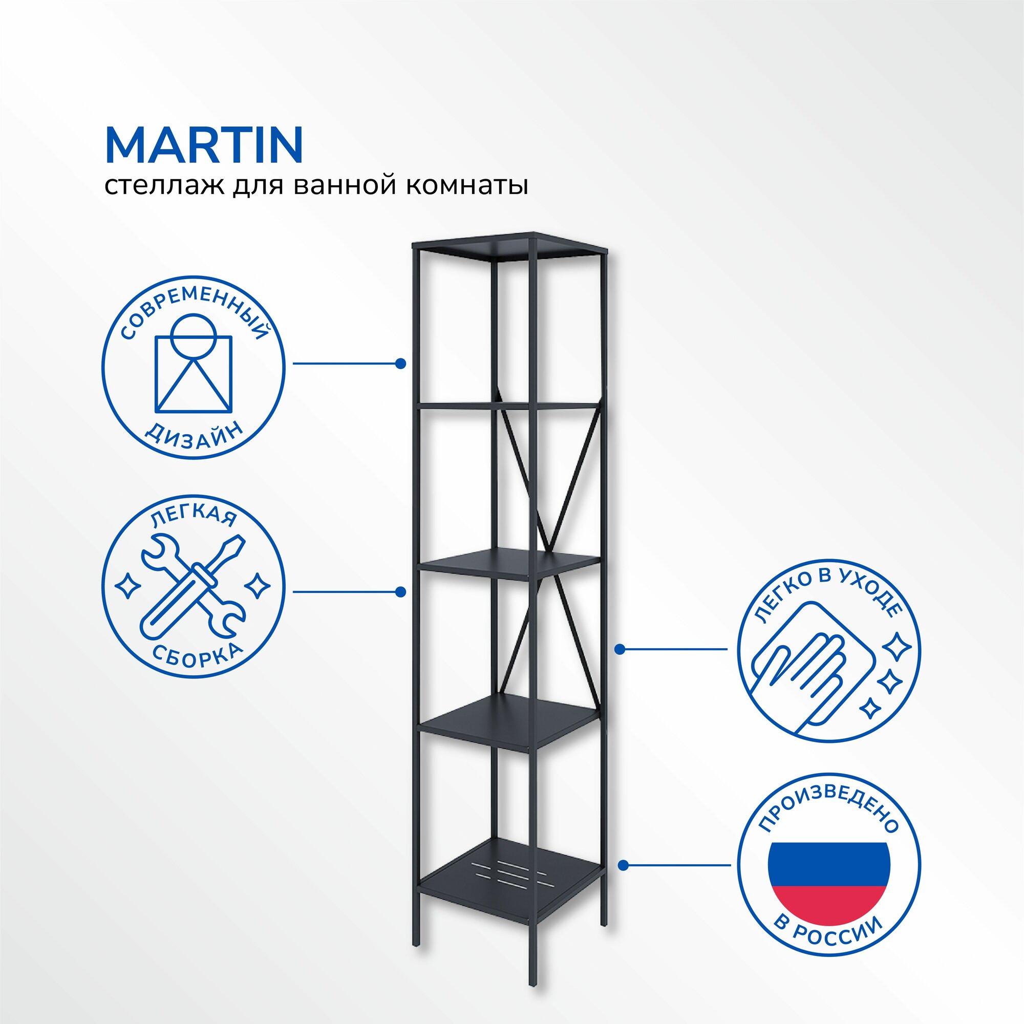 Стеллаж 35х35х170 см. Ulitka Martin, прямой, металл, цвет черный информация: