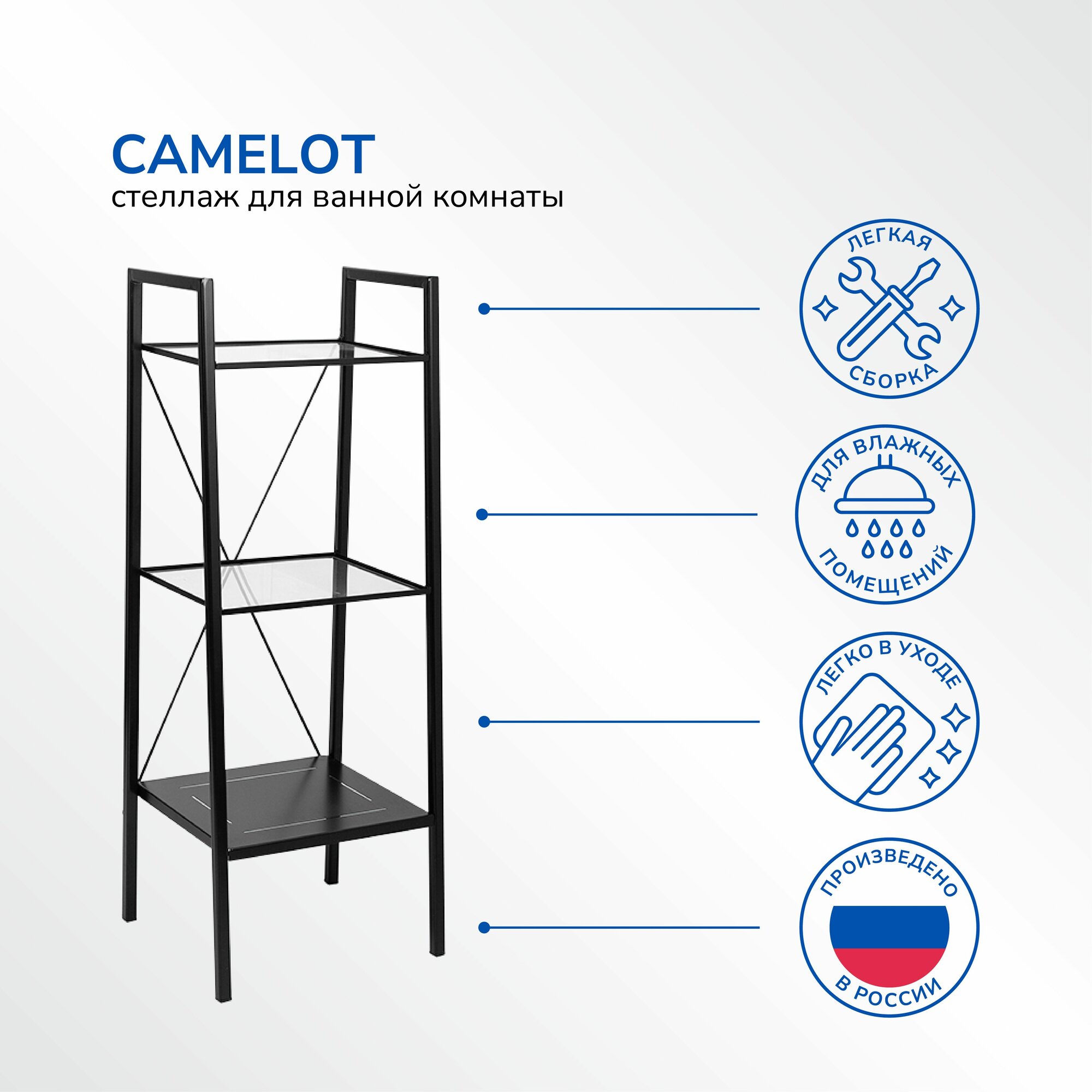 Стеллаж 40х35х105 см Ulitka Camelot прямой, металл, цвет черный информация: